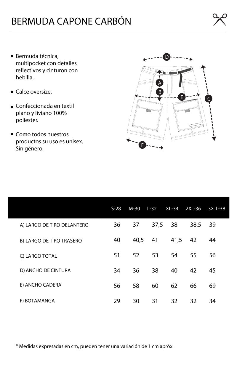 Bermuda técnica, multi pocket con detalles reflectivos cinco bolsillos y cinturón con hebilla, calce oversize confeccionada en textil plano y liviano 100% poliéster.
