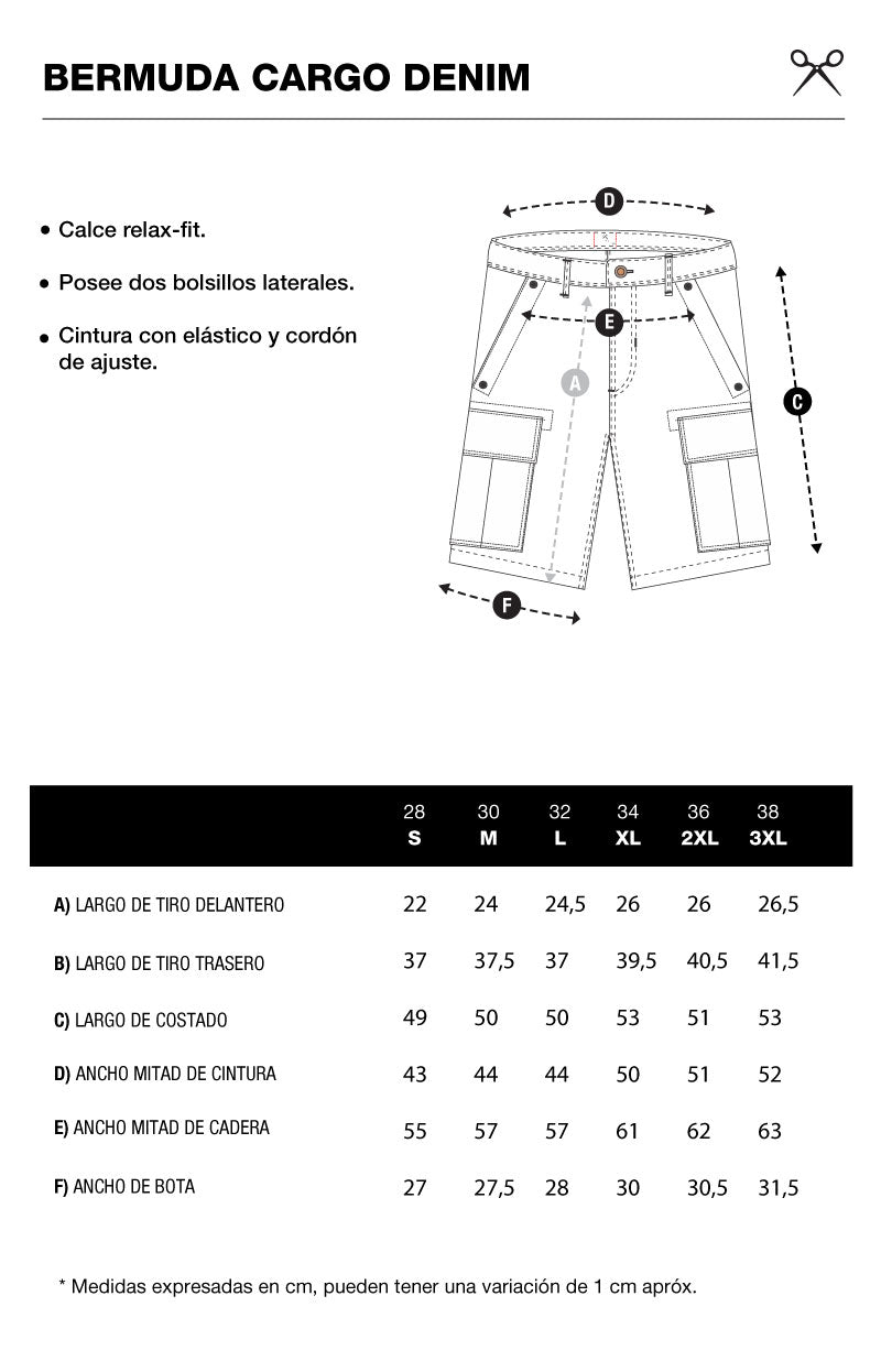 Bermuda de denim clásica cinco bolsillos, calce regular, con ruedo efecto desflecado, confeccionada en textil denim rígido 100% algodón.