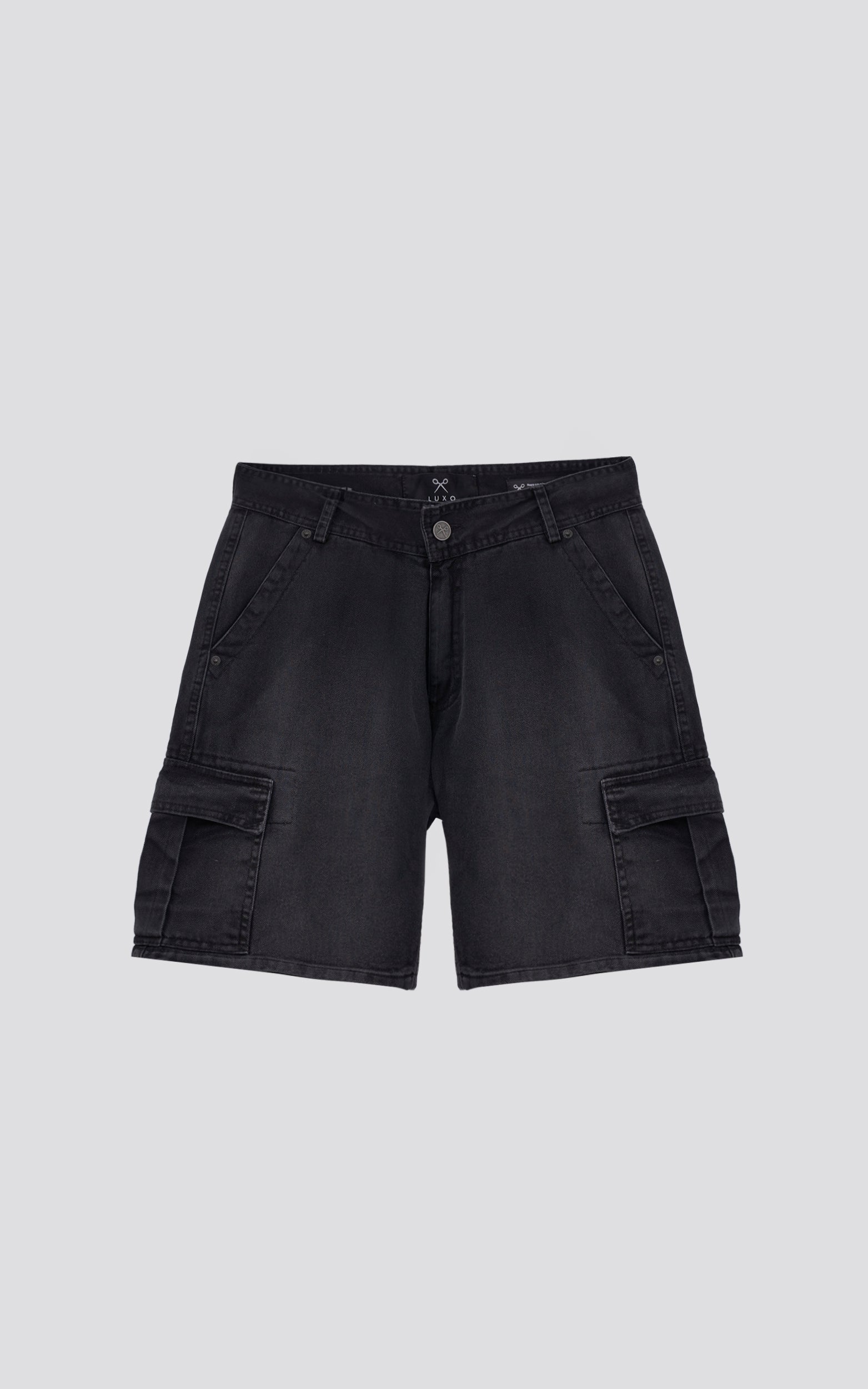 Bermuda de denim clásica con cinco bolsillos, calce regular, con ruedo efecto desflecado, confeccionada en textil denim rígido 100% algodón.