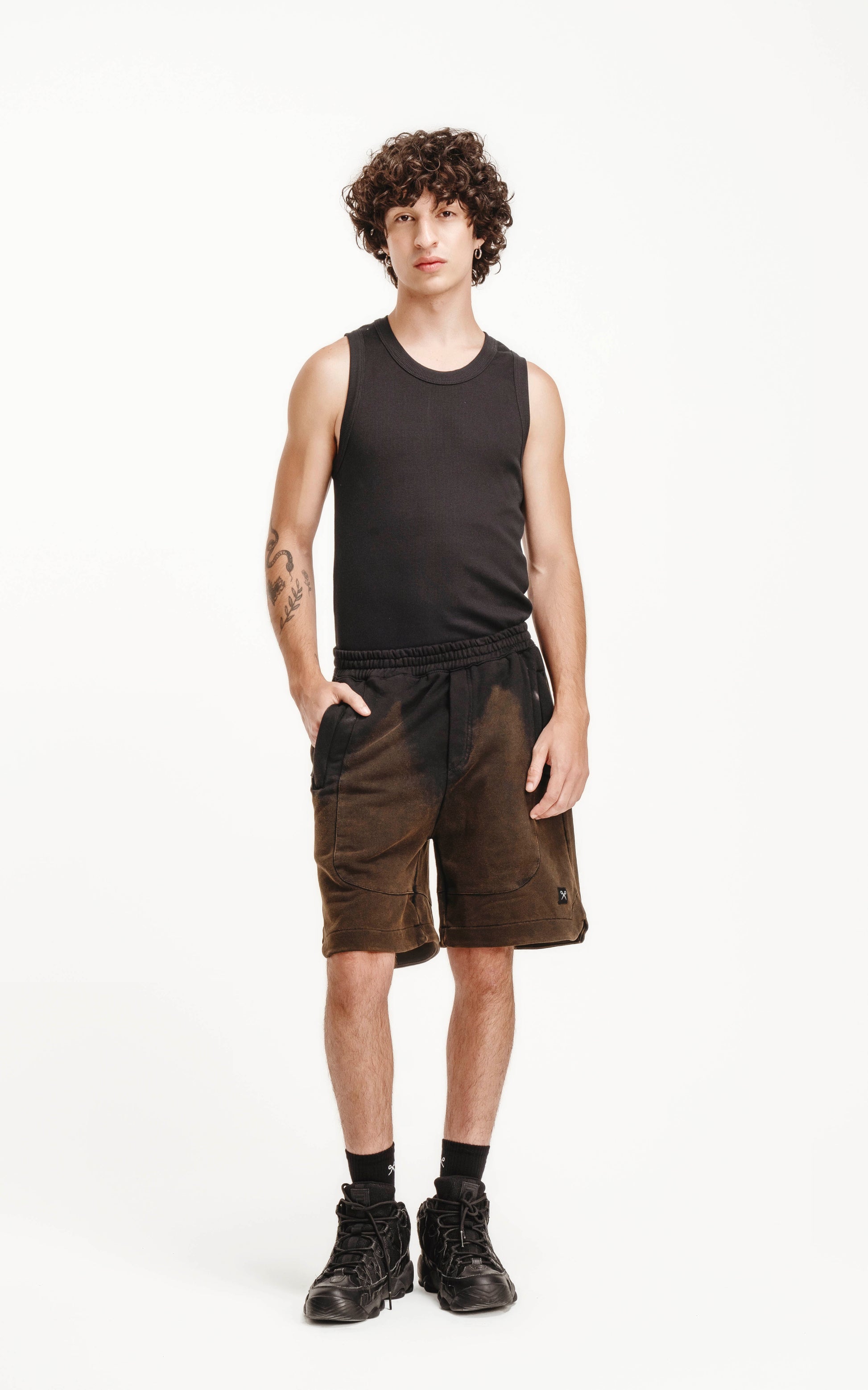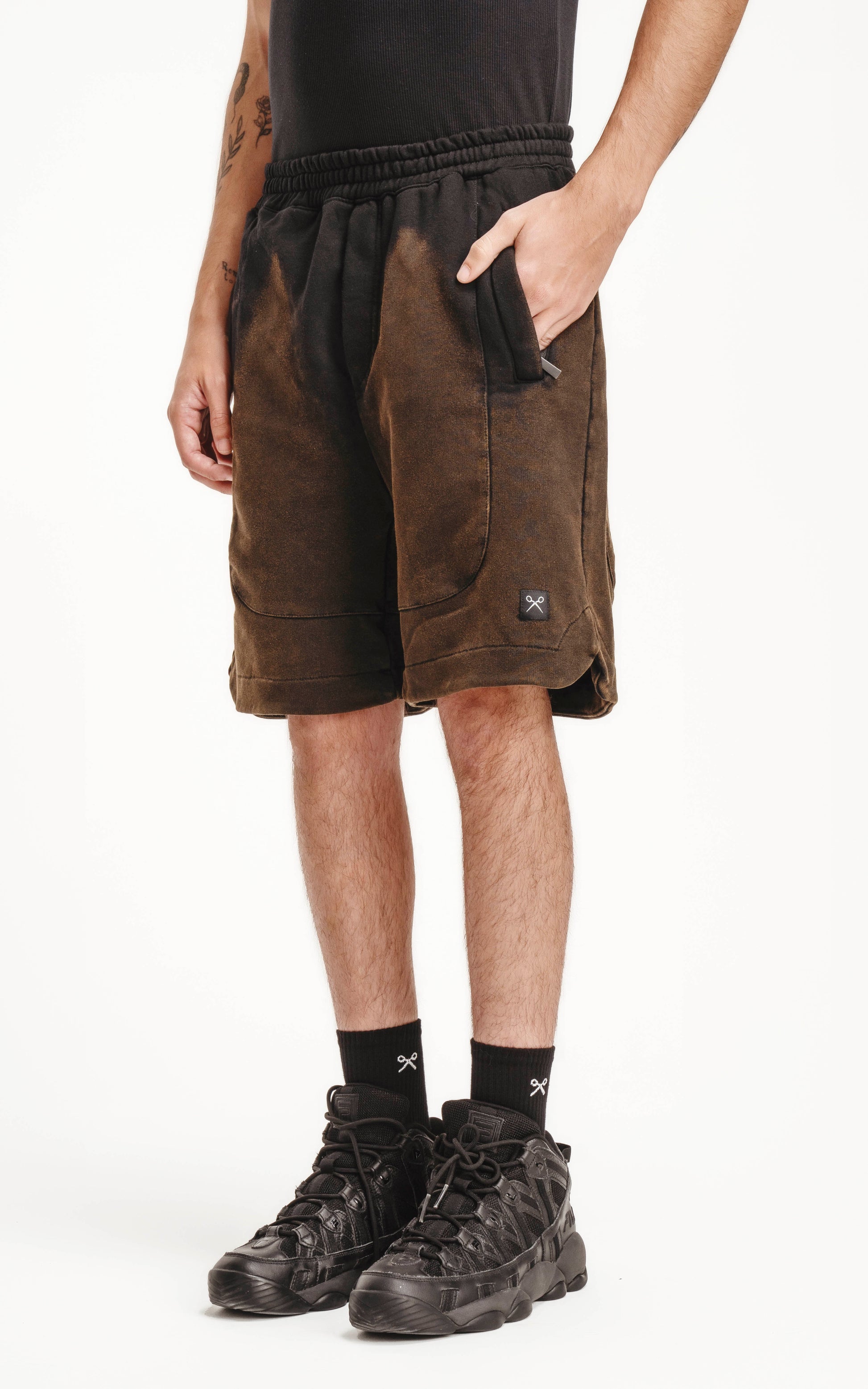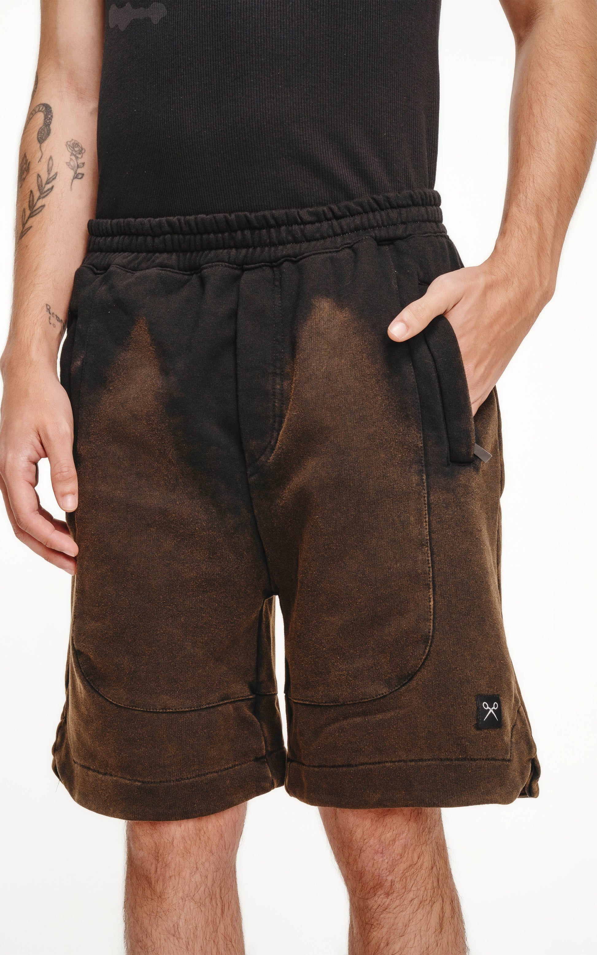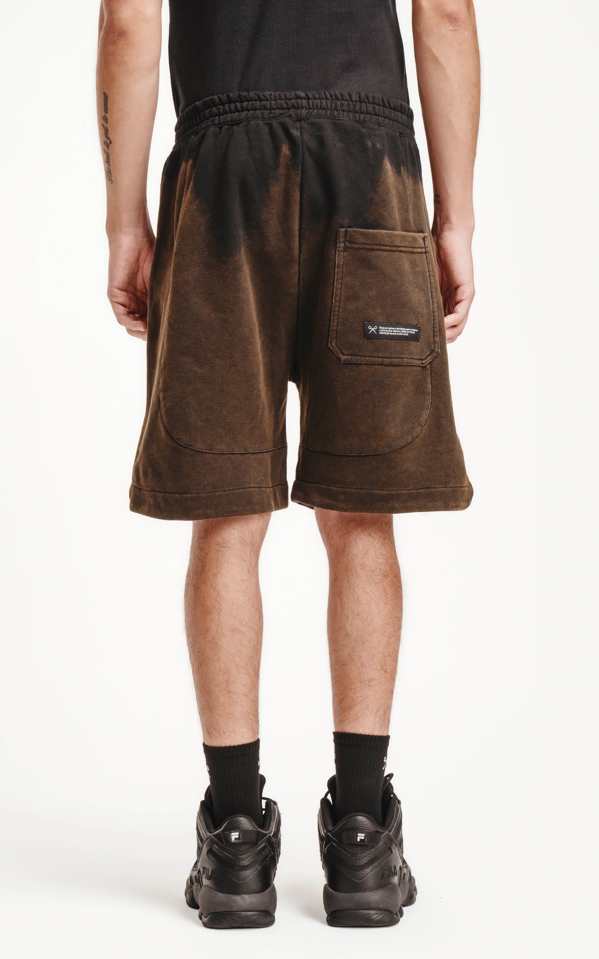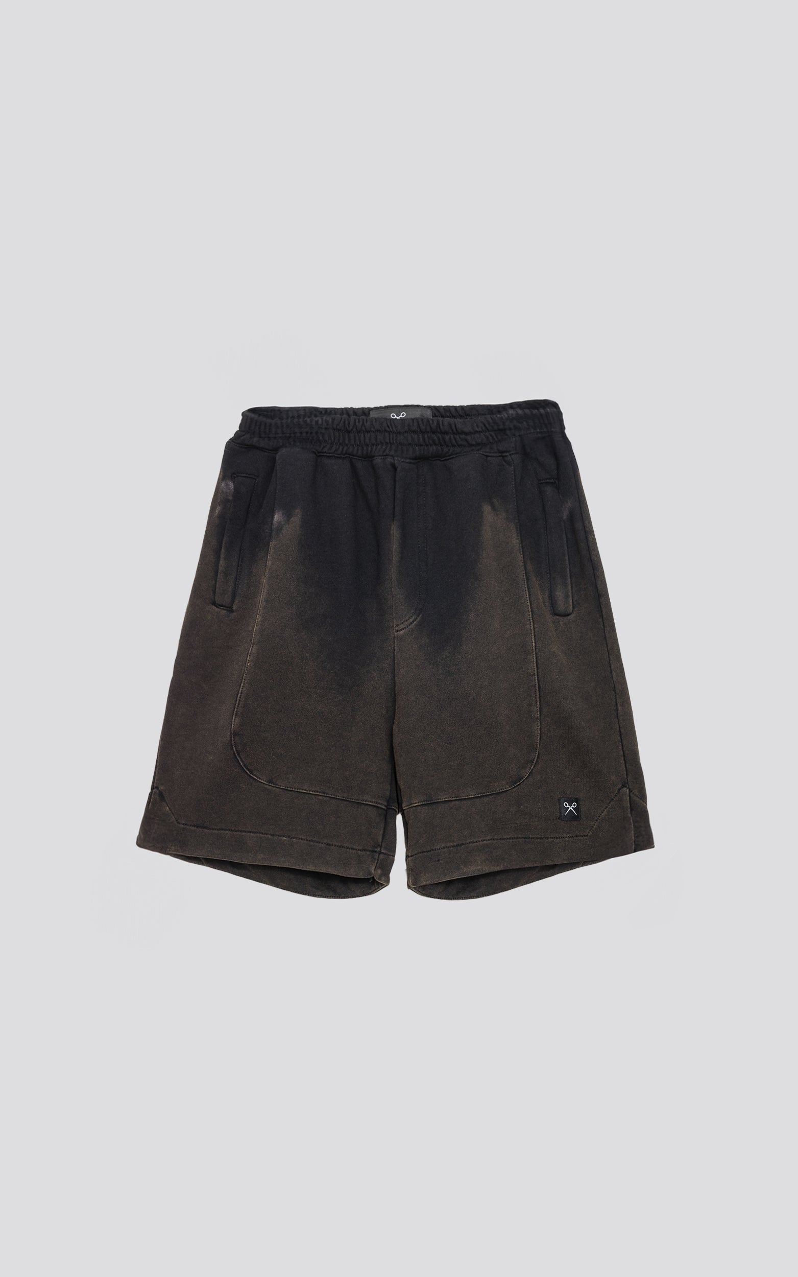Bermuda de algodón rústico calce oversize con elástico en la cintura y bolsillos con cierre