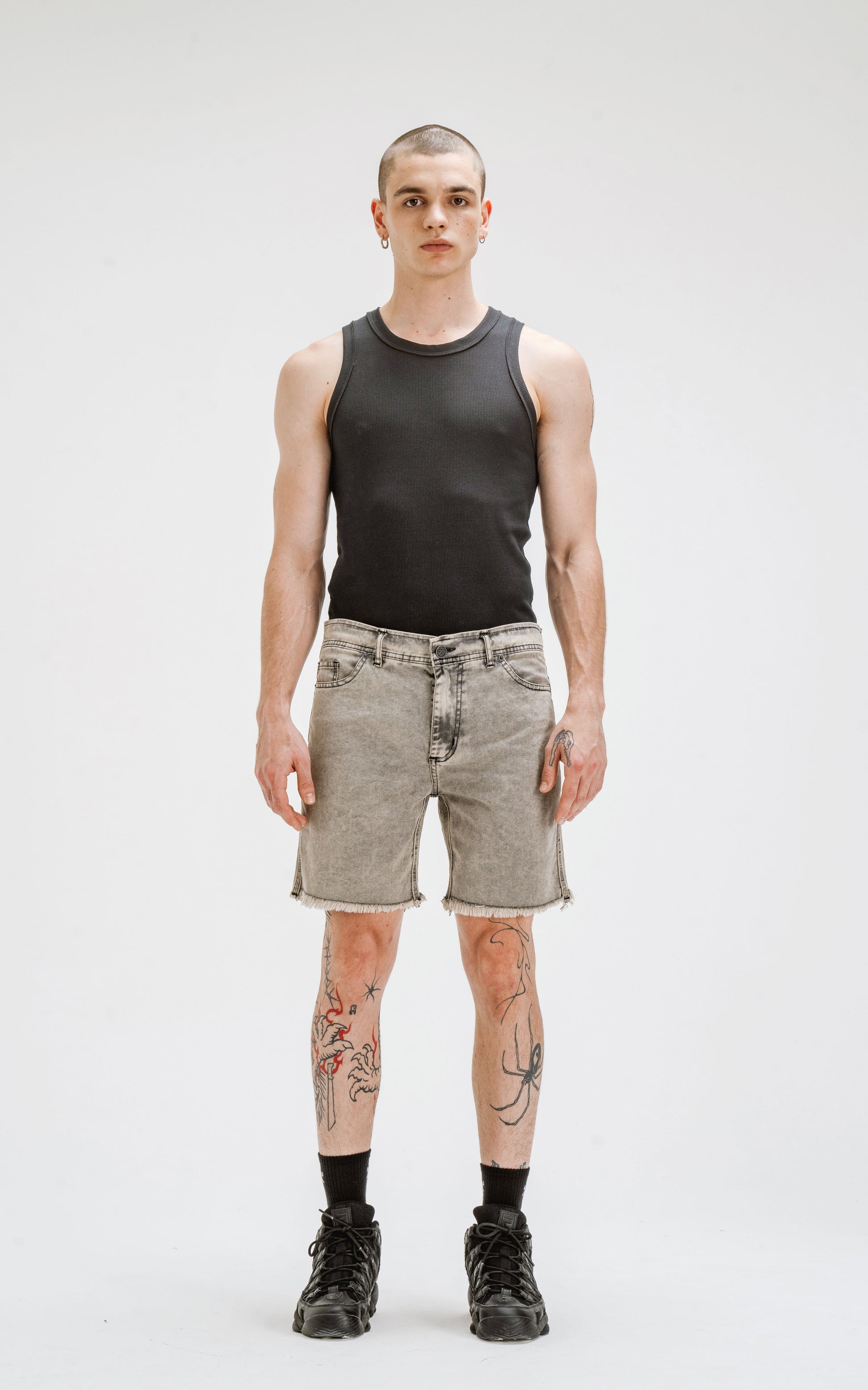 Bermuda de denim clásica cinco bolsillos, calce regular, con ruedo efecto desflecado, confeccionada en textil denim rígido 100% algodón.
