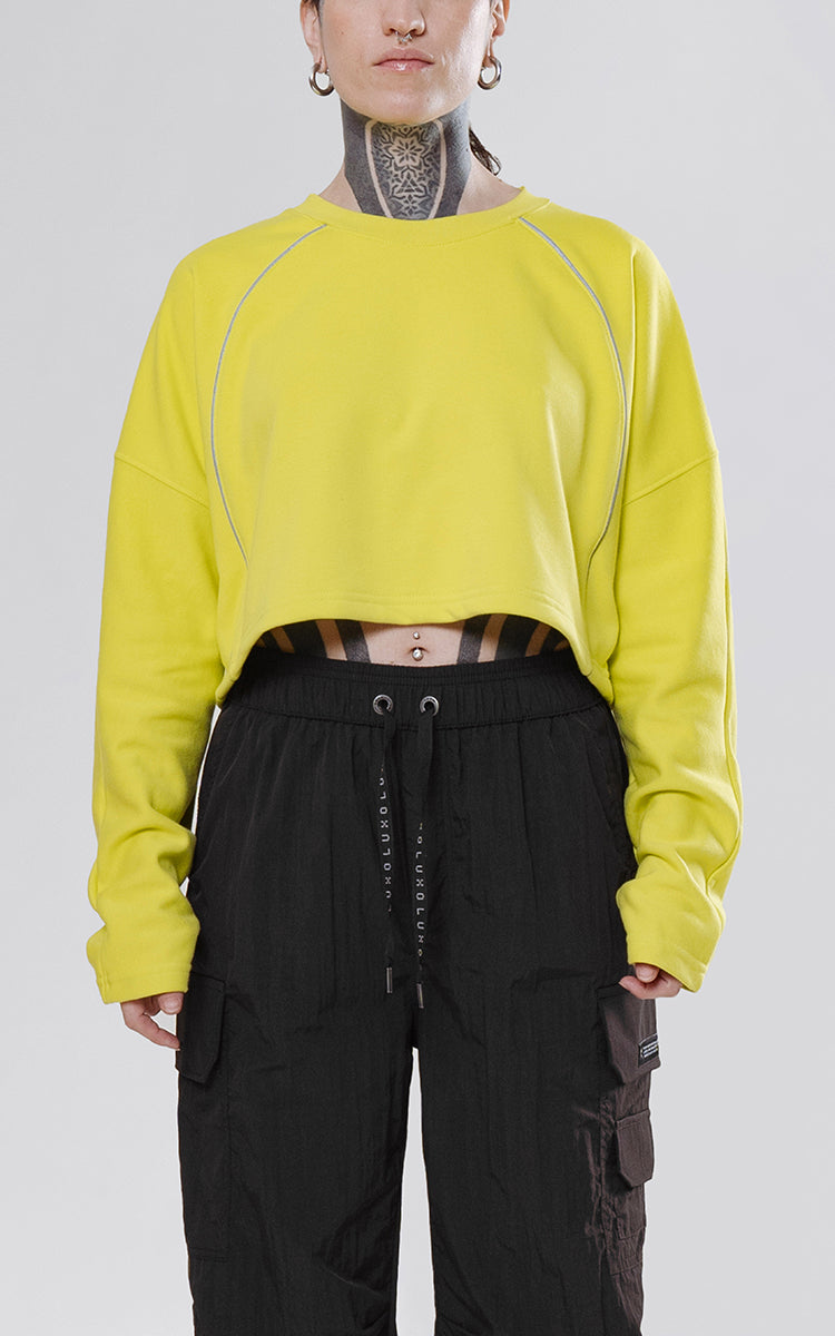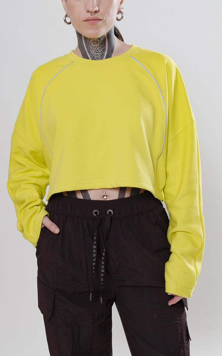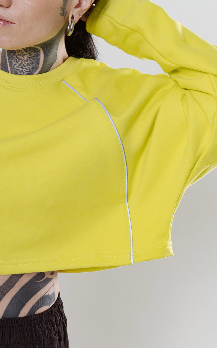 Buzo con cuello redondo, hombro caidos y recorte delantero unico con vivo reflex. Contiene calce crop relax. Realizado en tejido rustico. Origen: Como todos nuestros productos, el Buzo Crop Sport fue diseñado por nuestro departamento de producción y confeccionado mediante la utilización de energías renovables en Solar Park, nuestra planta de producción ubicada en La Rioja, Argentina. Recomendaciones: Si bien todos nuestros productos tienen prelavado de fábrica, se recomienda lavar en agua fría y evitar aplicar calor para prevenir contracciones naturales del algodón. Ropa sin género diseñada para seres humanos.
