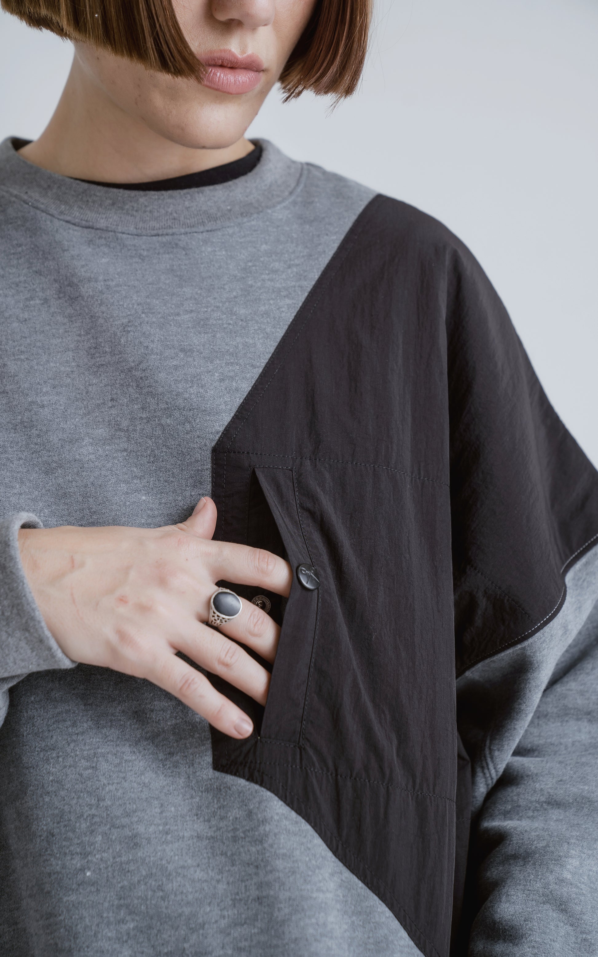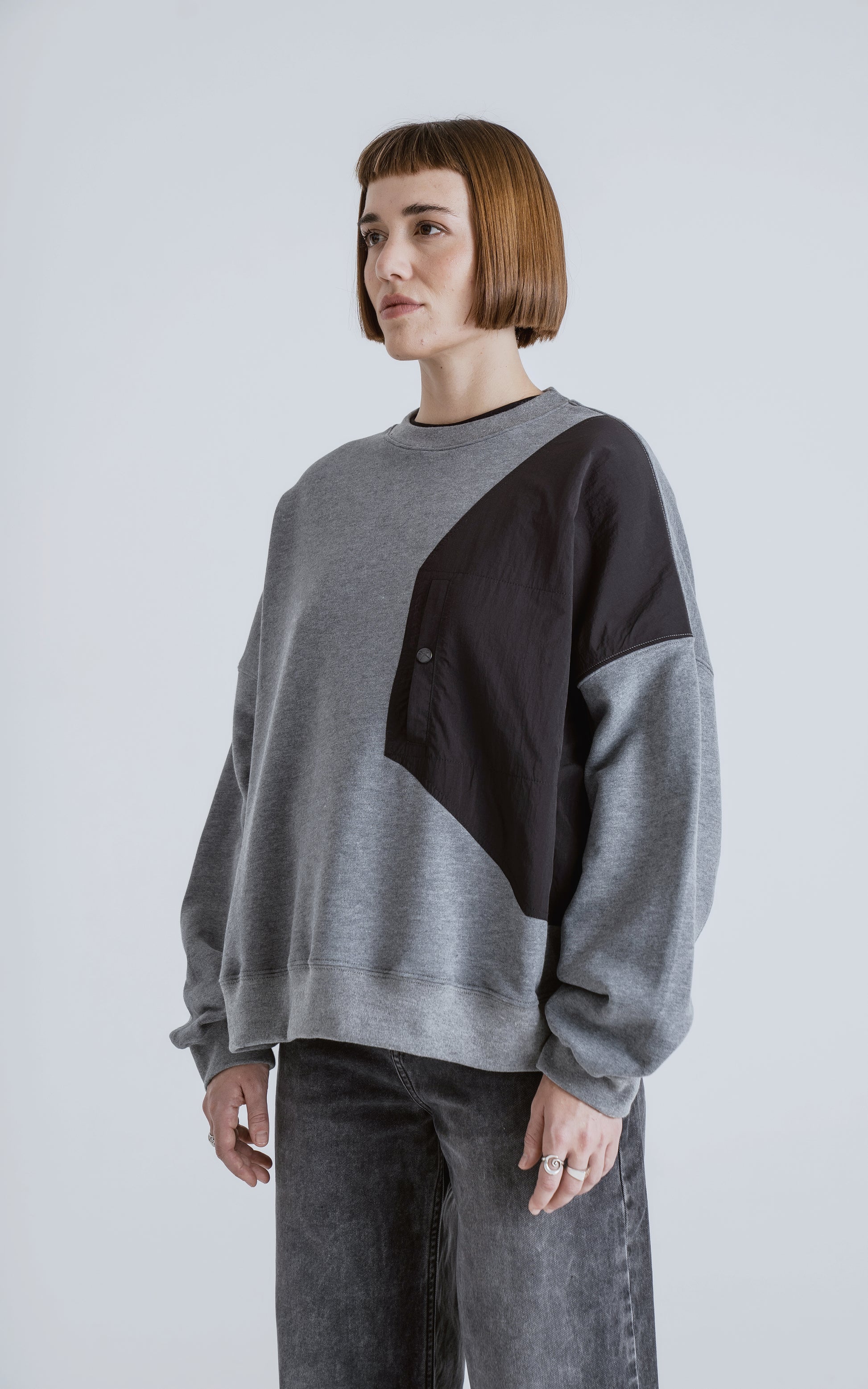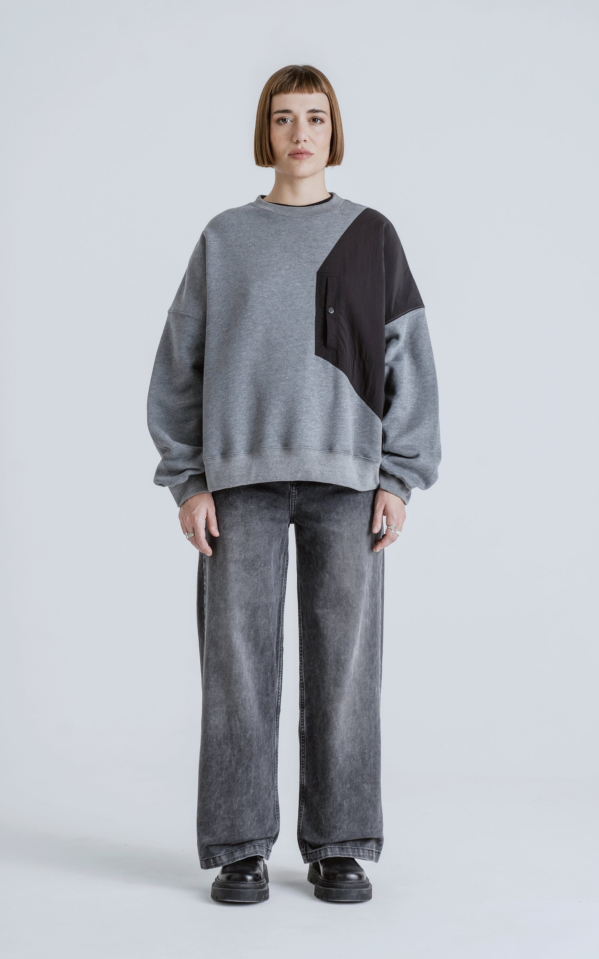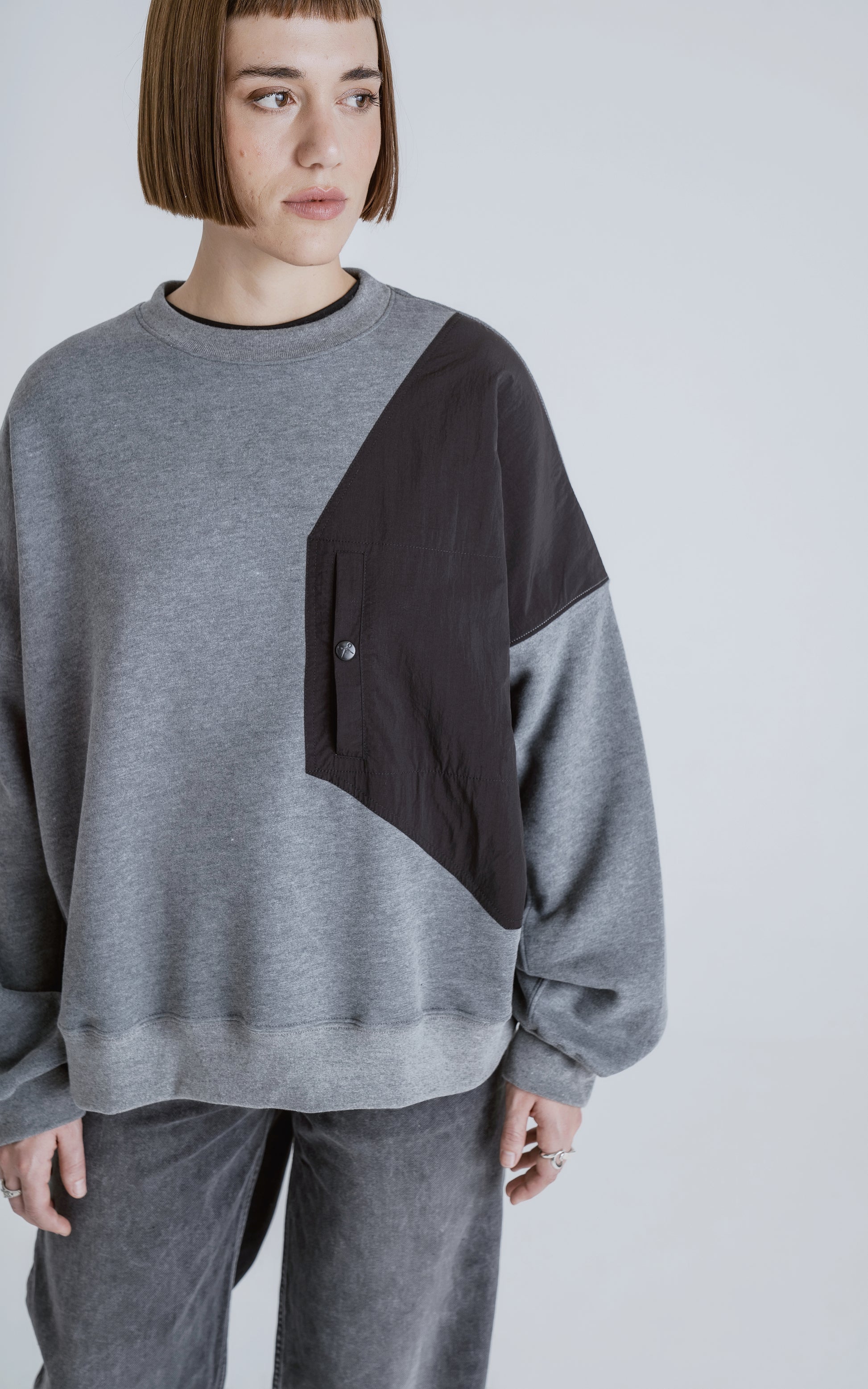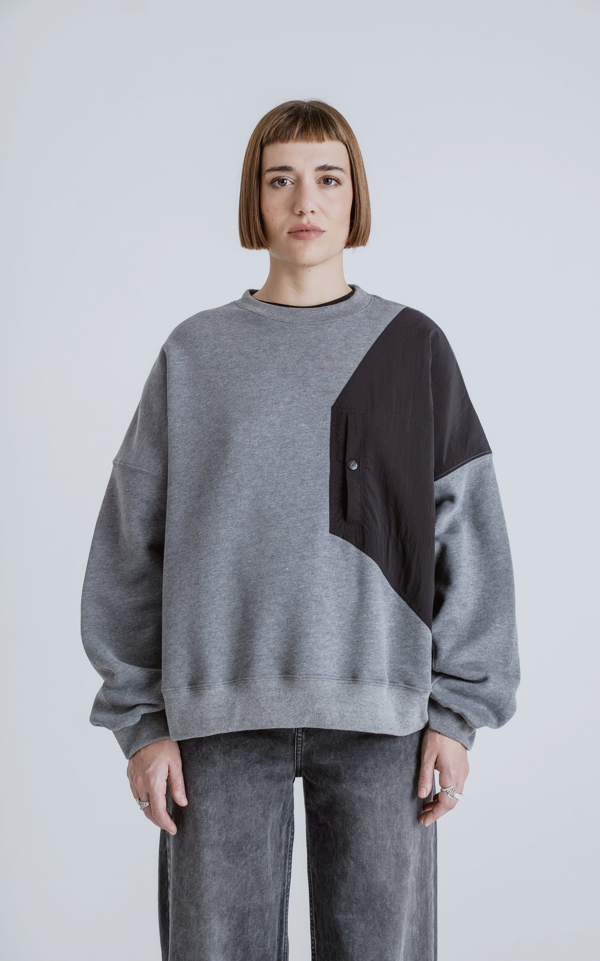Caracreristicas: Buzo cuello redondo, confeccionado en frisa gamuzada 100% algodón, con recortes combinación de microfibra y calce oversize crop. Tiene la comodidad de un buzo básico, con el toque técnico que le da su bolsillo delantero, con capacidad para llevar tus pertenencias como llaves, celular, etc.