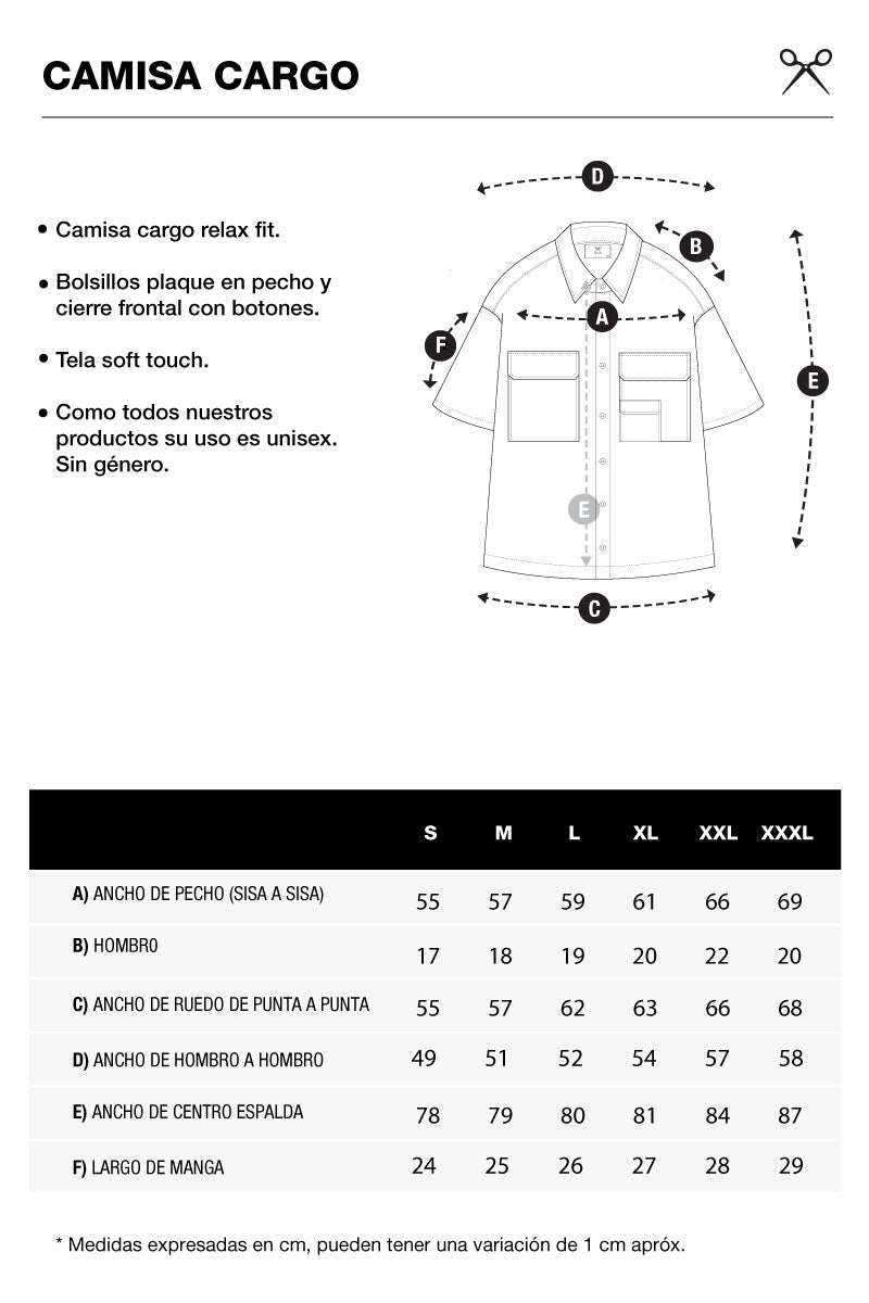 Camisa cargo relax fit. Contiene bolsillos blaque en pecho y cierre frontal con botones.