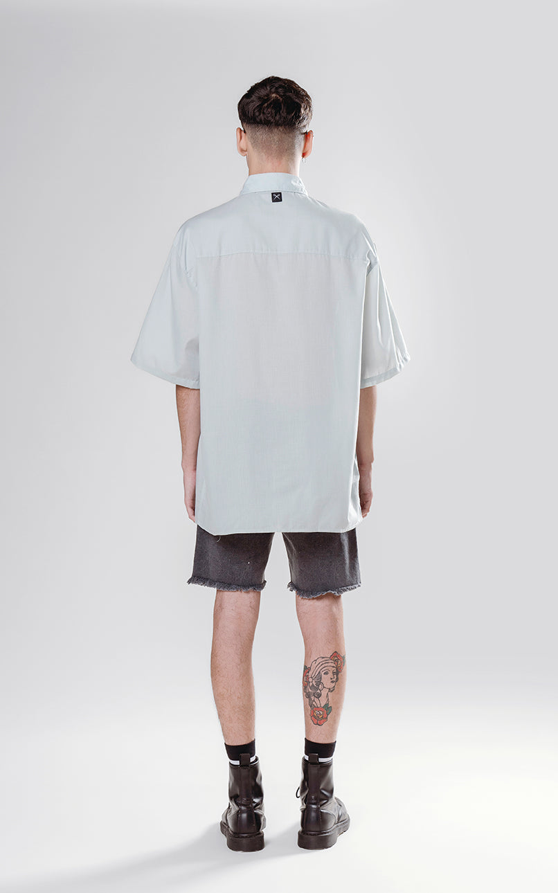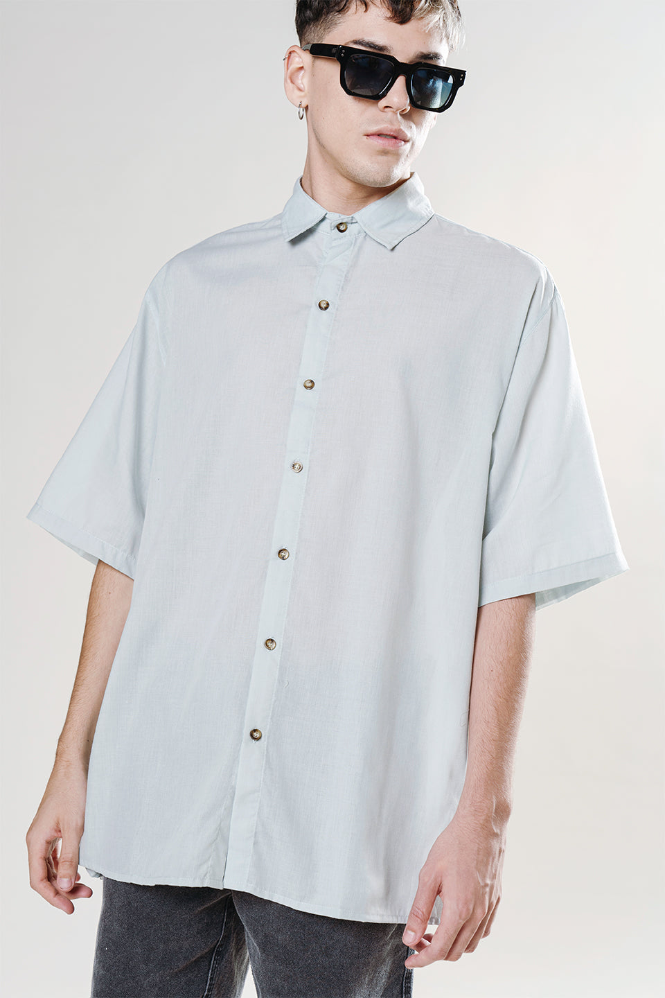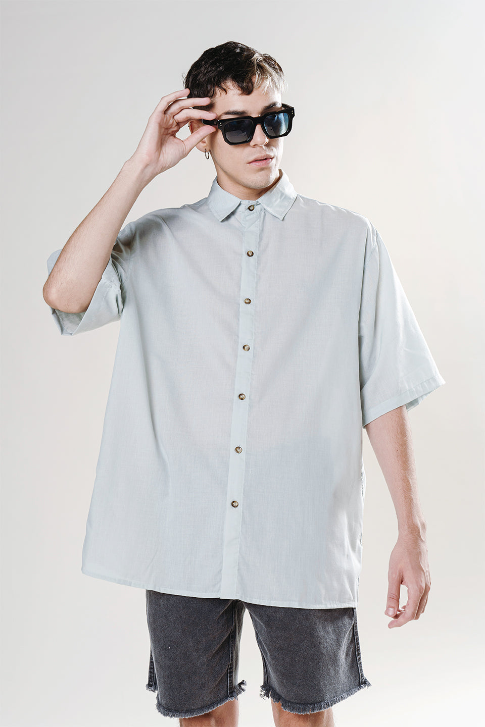 Camisa manga corta calce oversize. Detalle de canesú en espalda. Su tela fina y liviana hacen a la prenda una opción fresca y cómoda.