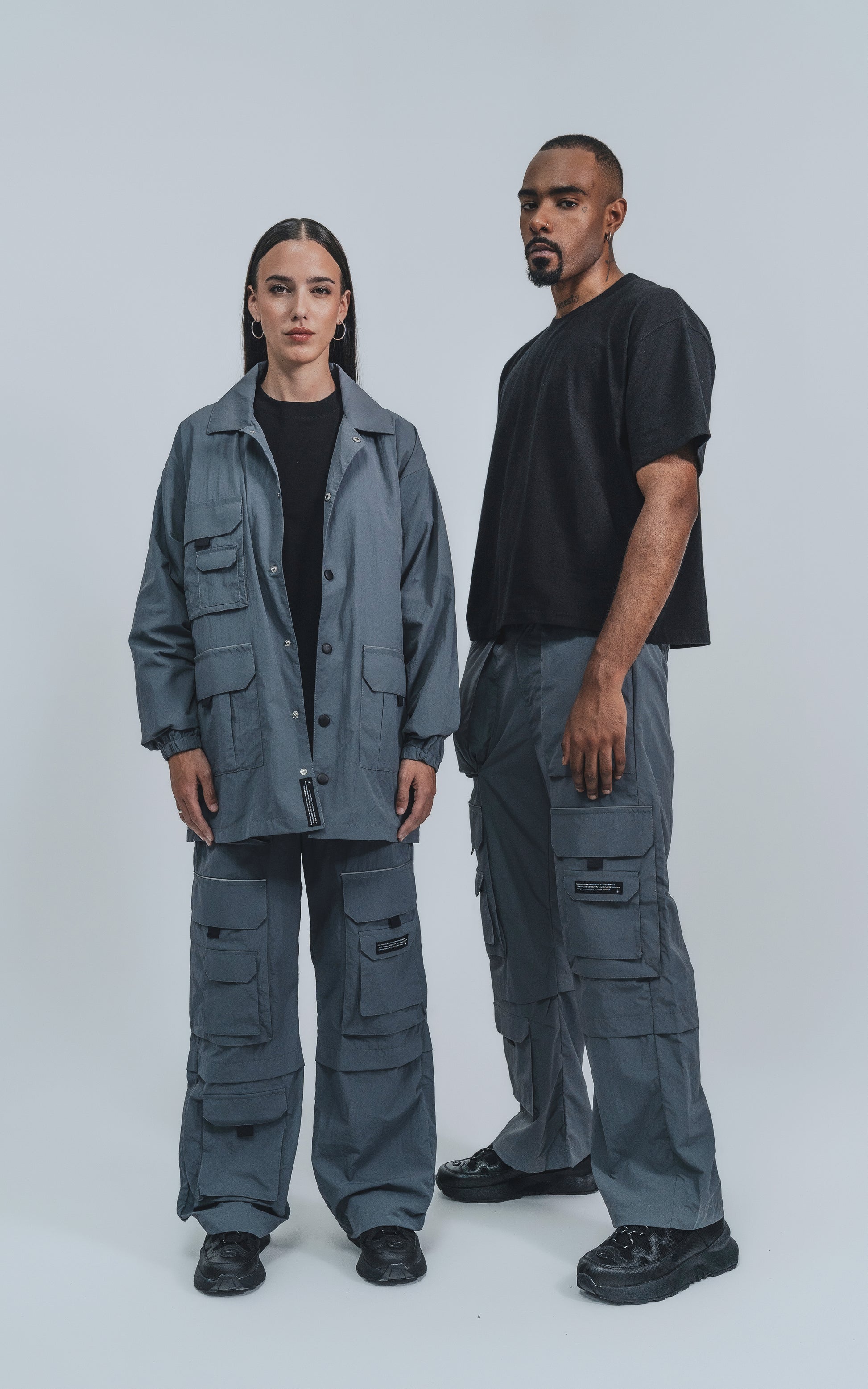 Campera con broches en delantero, forrada con red, múltiples bolsillos en el delantero con detalles en réflex y puños elásticos en las mangas. Confeccionada en textil liviano 100% poliéster. Calce oversize.
