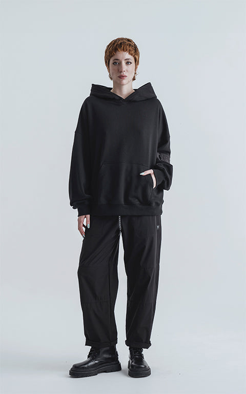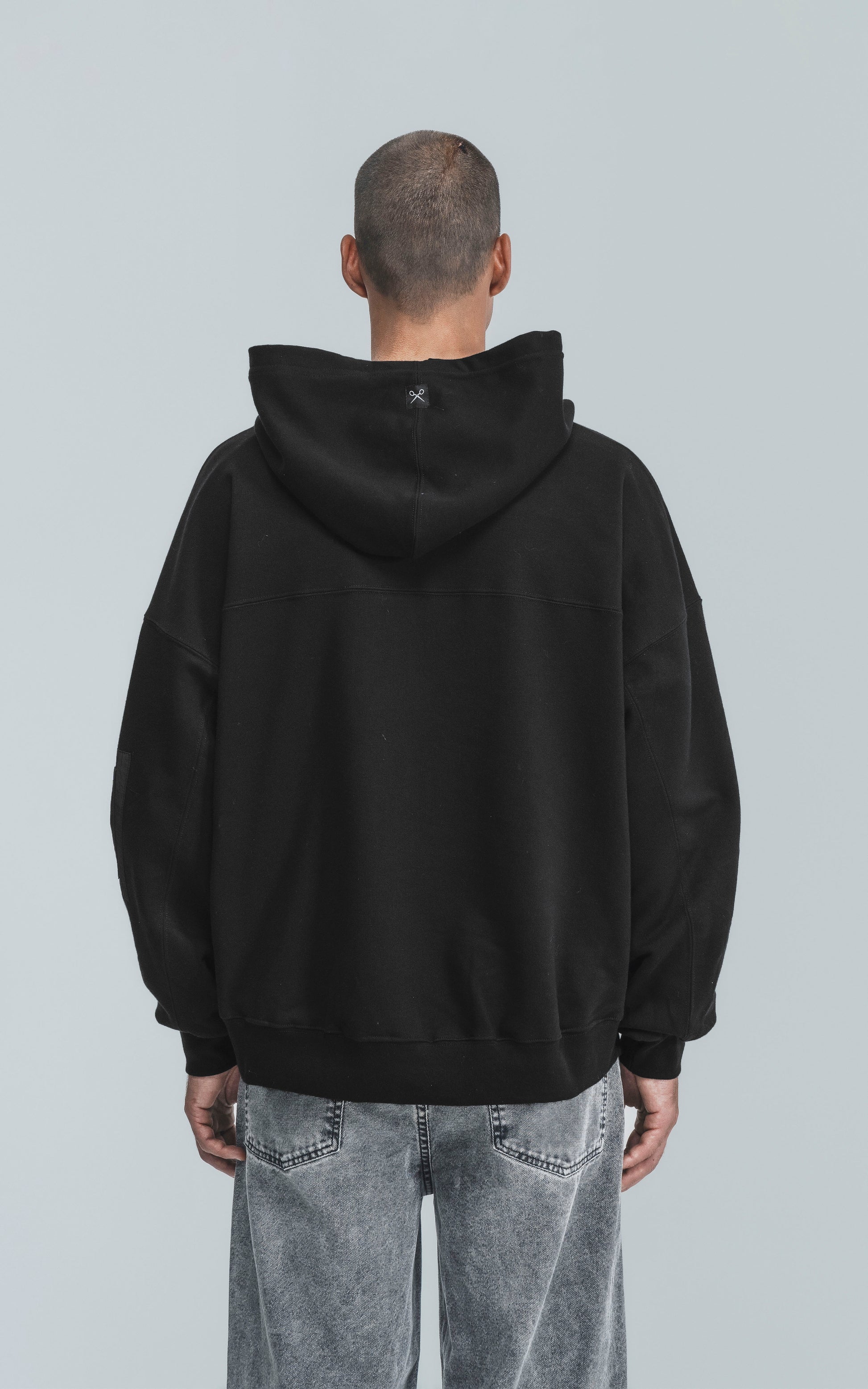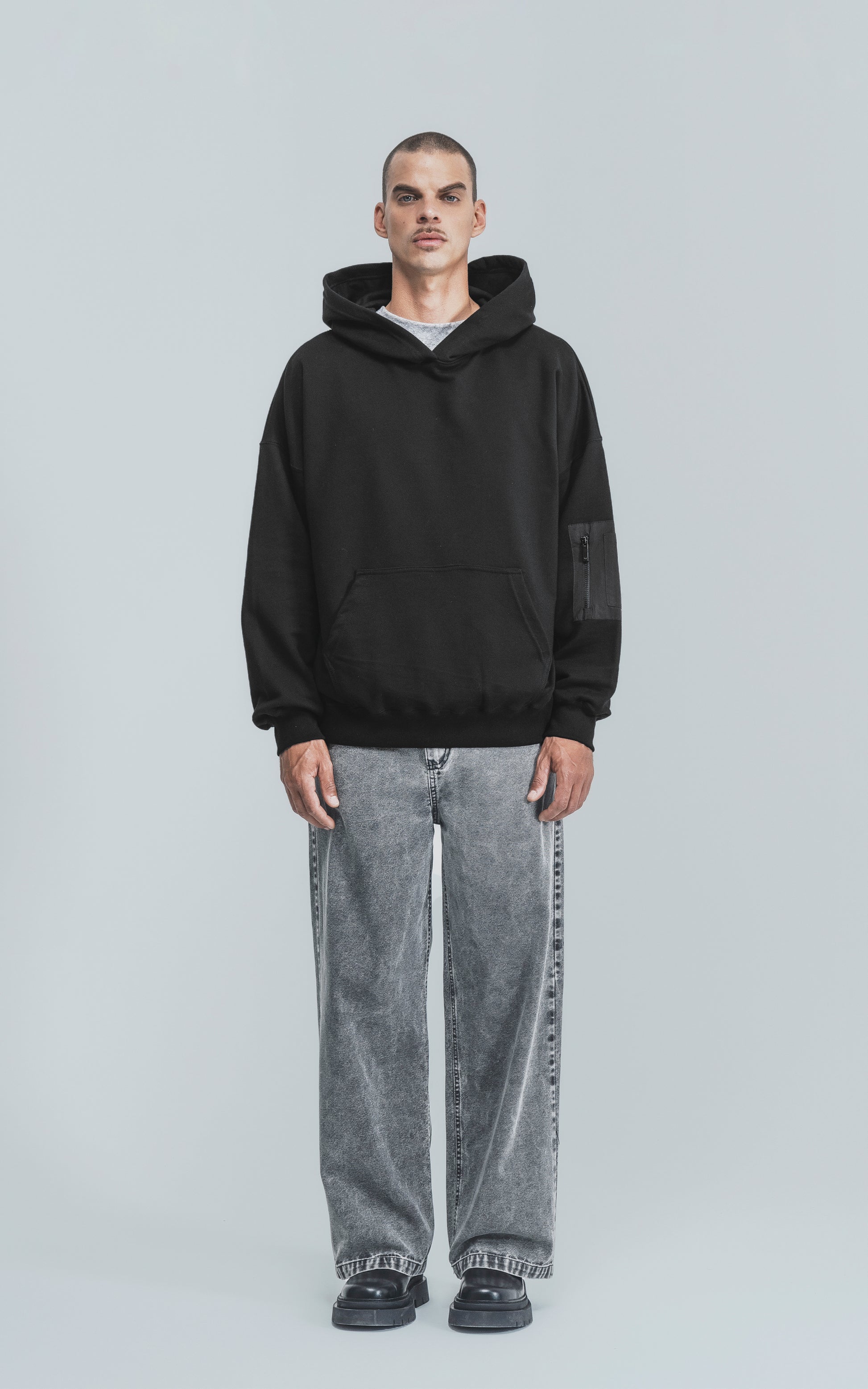 Hoodie confeccionado en rústico 100% algodón, silueta oversize. Bolsillo de microfibra en manga estilo bomber con cierre. Incorporando capucha forrada, es la reversión de nuestro Buzo Hunter.