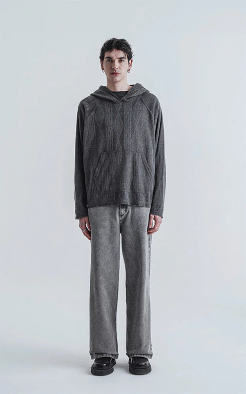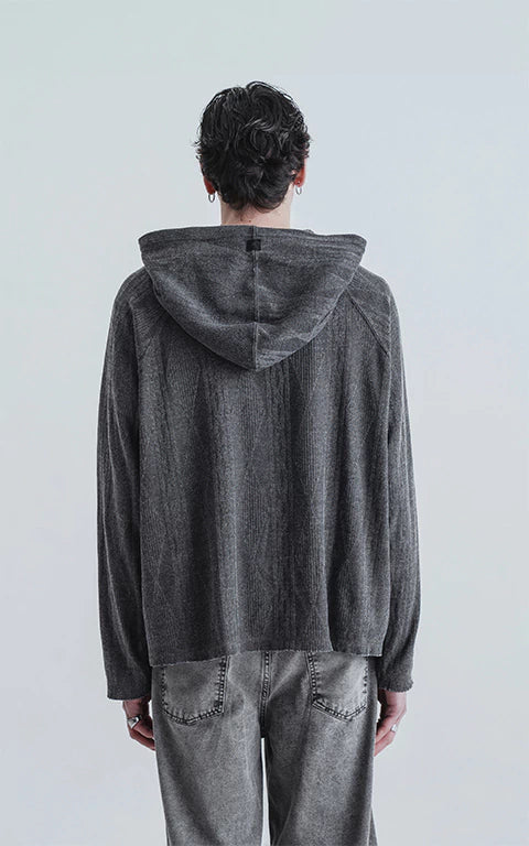Hoodie liviano, confeccionado en lanilla con textura. De calce oversize crop, se destaca por sus costuras expuestas. Reversionamos el típico sweater y lo convertimos en hoodie.