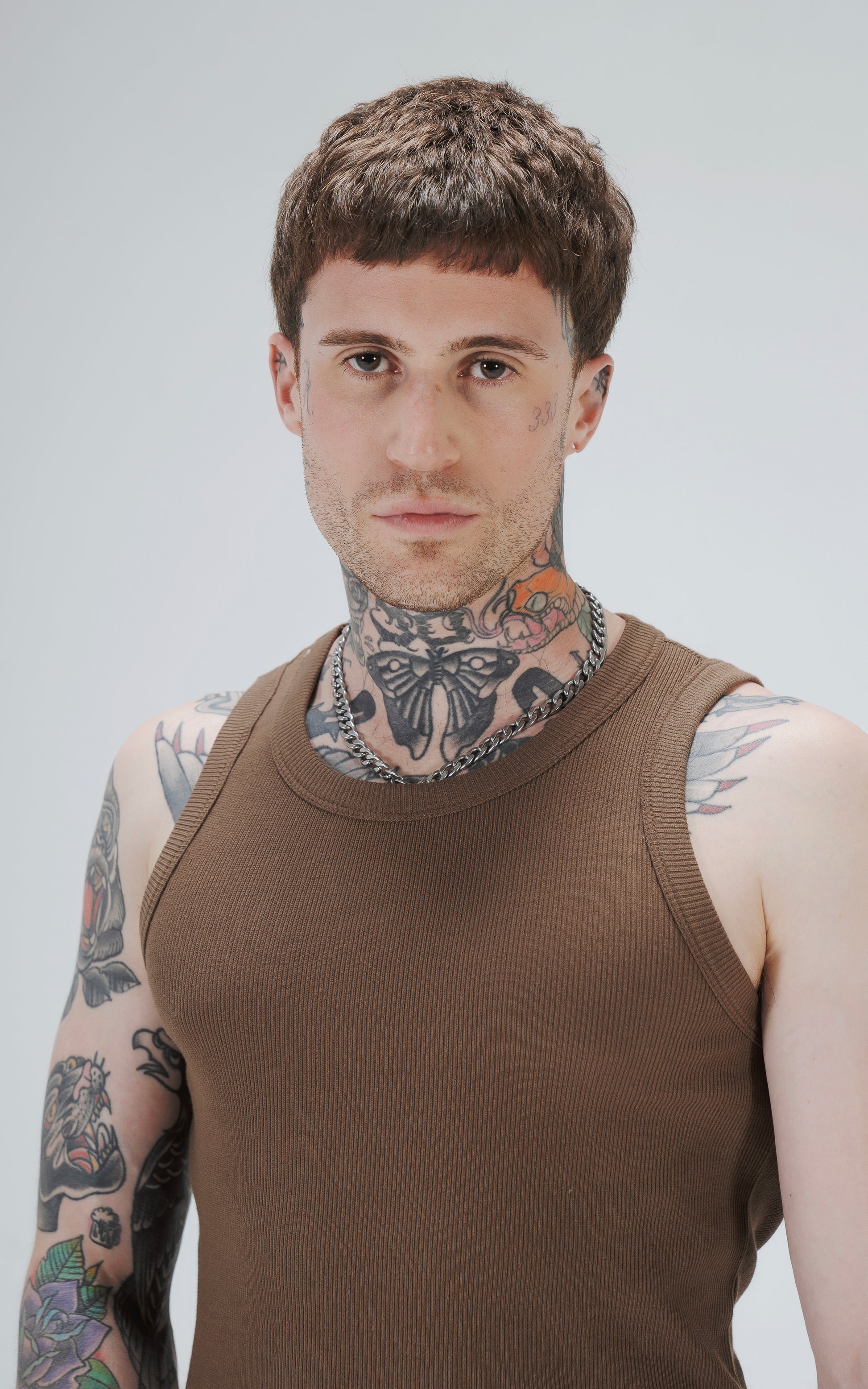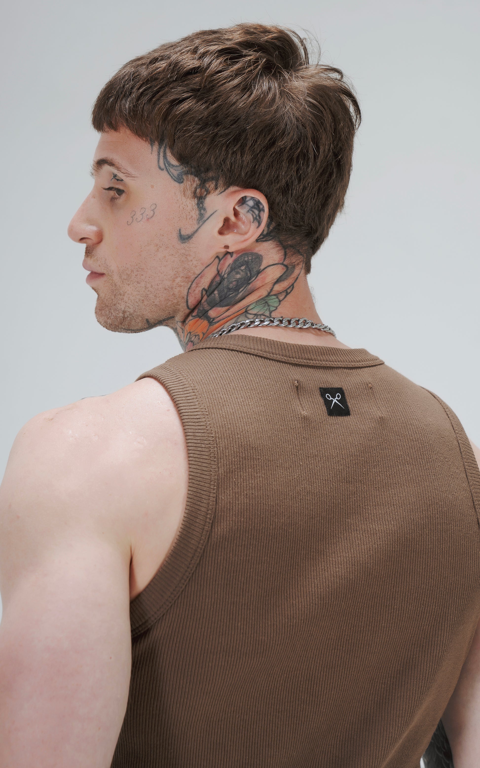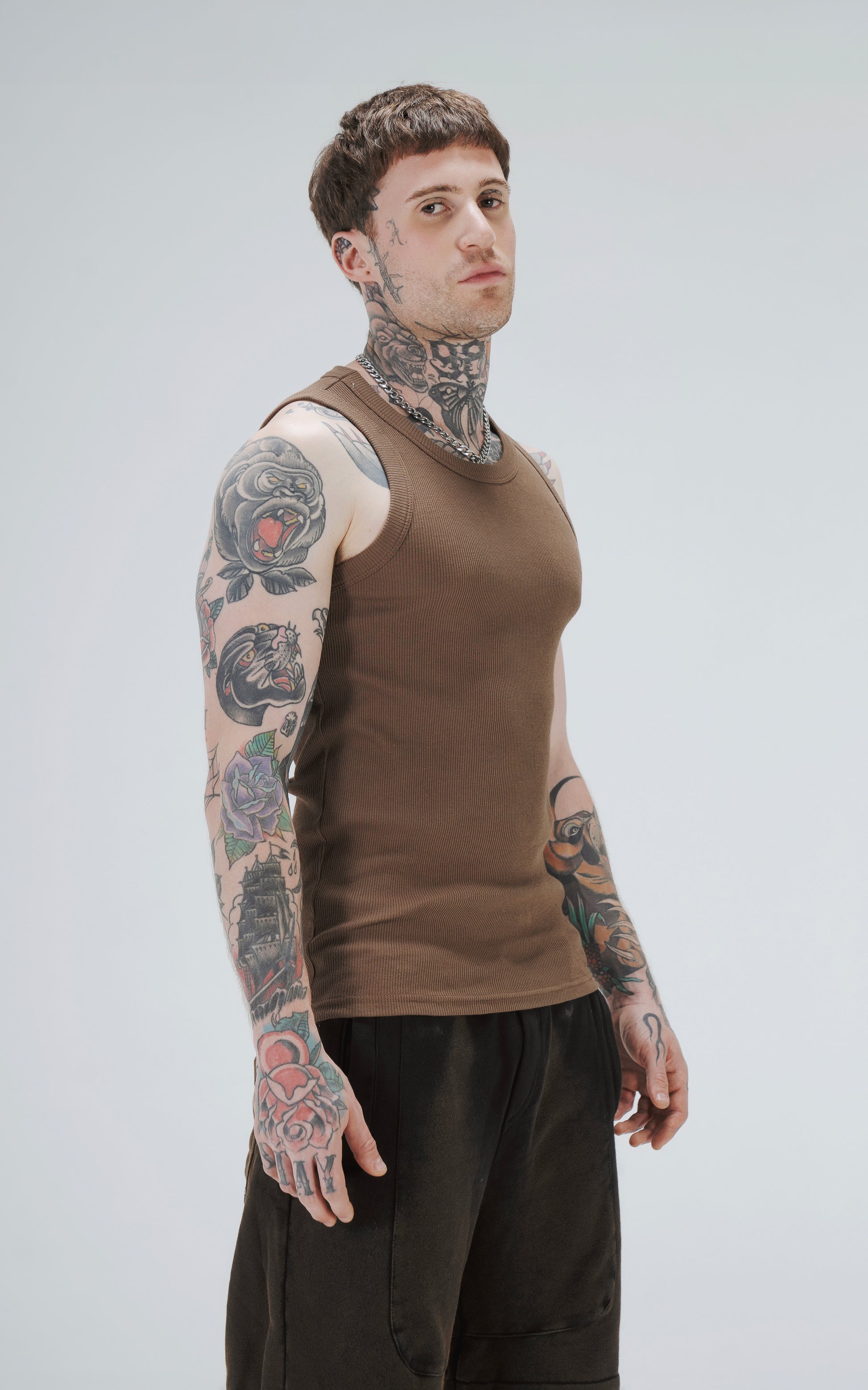 Musculosa básica confeccionada en tela Morley y con moldería slim-fit.