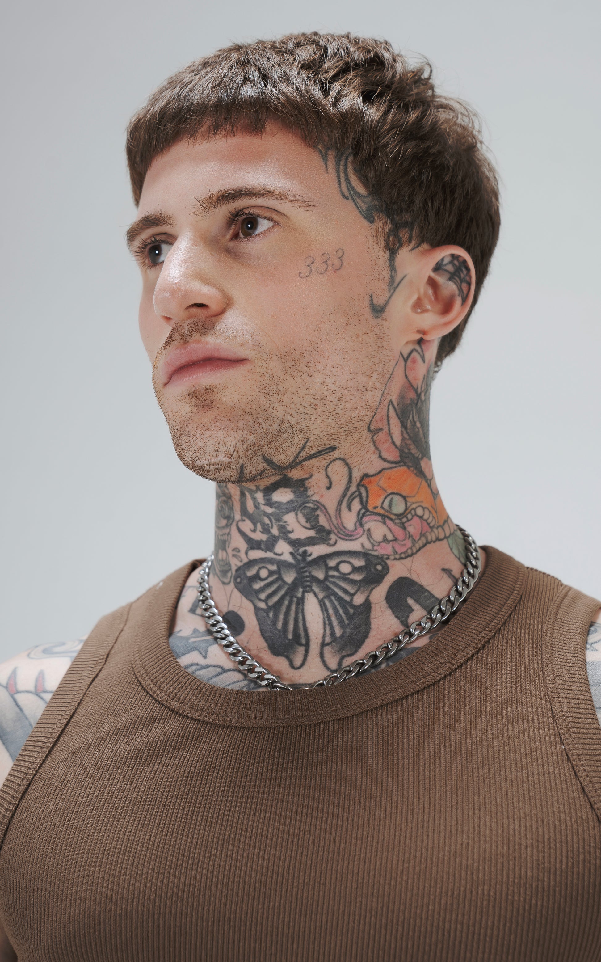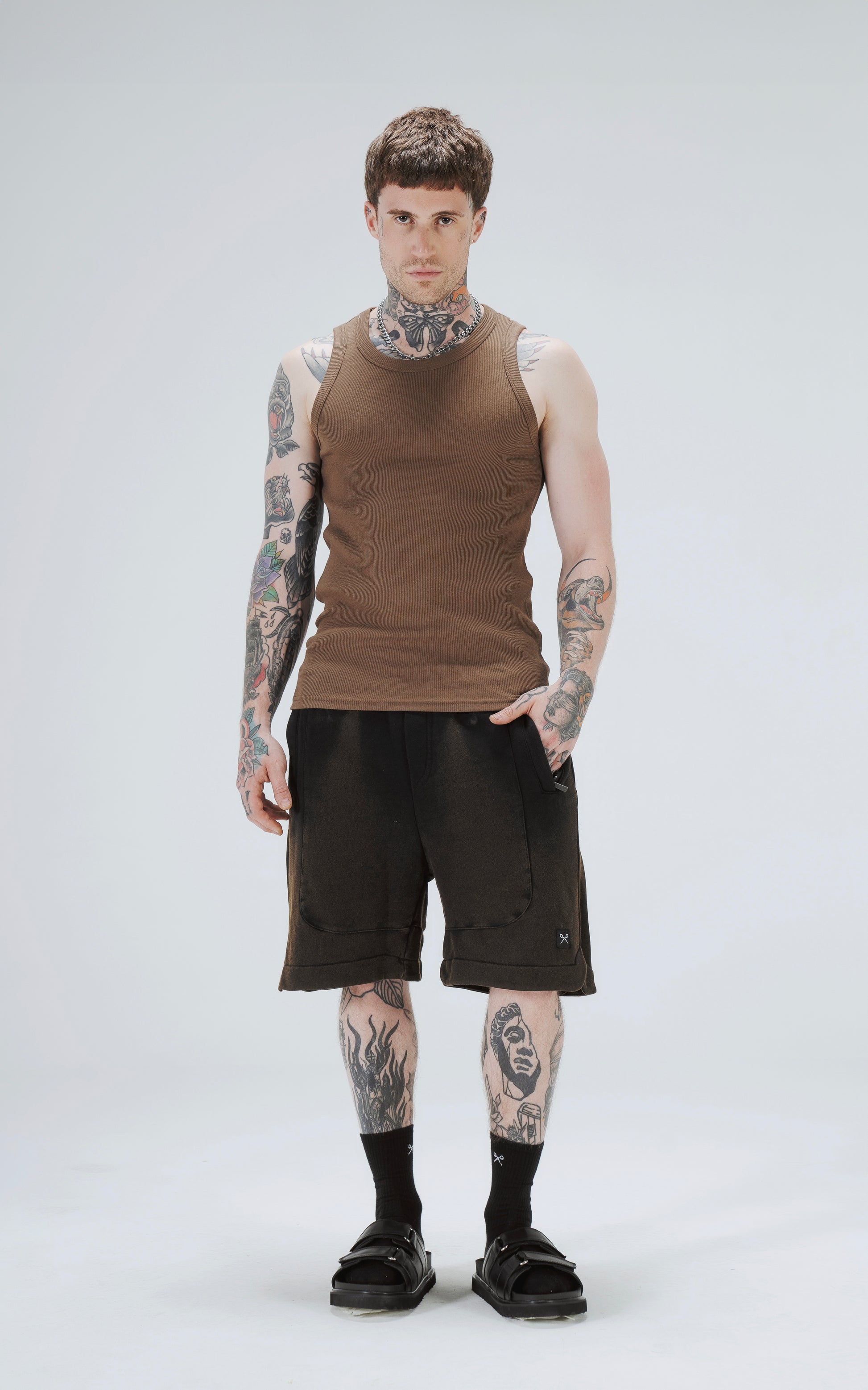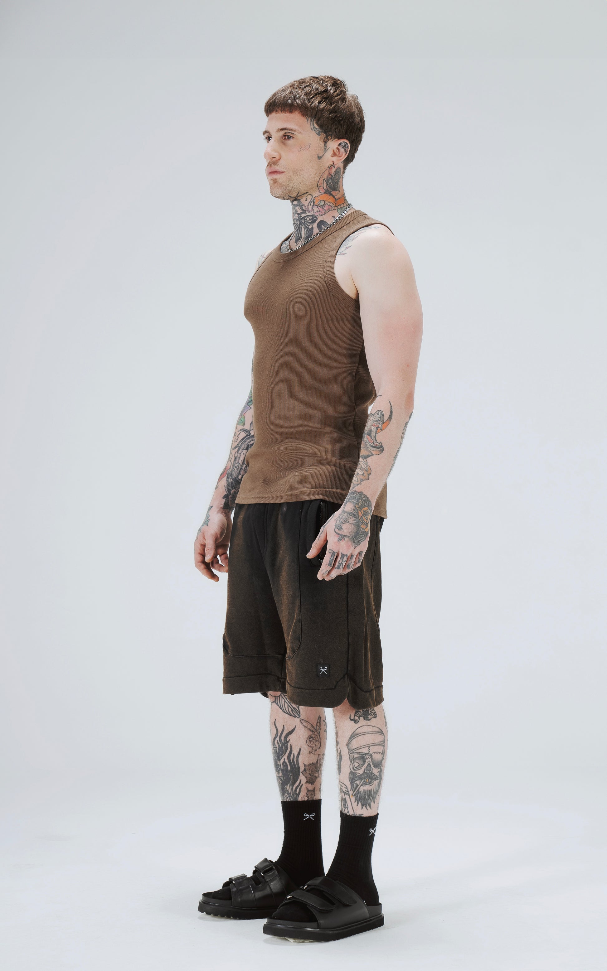 Musculosa básica confeccionada en tela Morley y con moldería slim-fit.