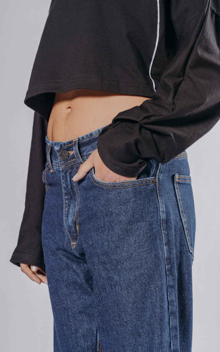 Materiales: Esta prenda fue realizada en tejido plano, denim 100% algodón, con proceso de suavizado.