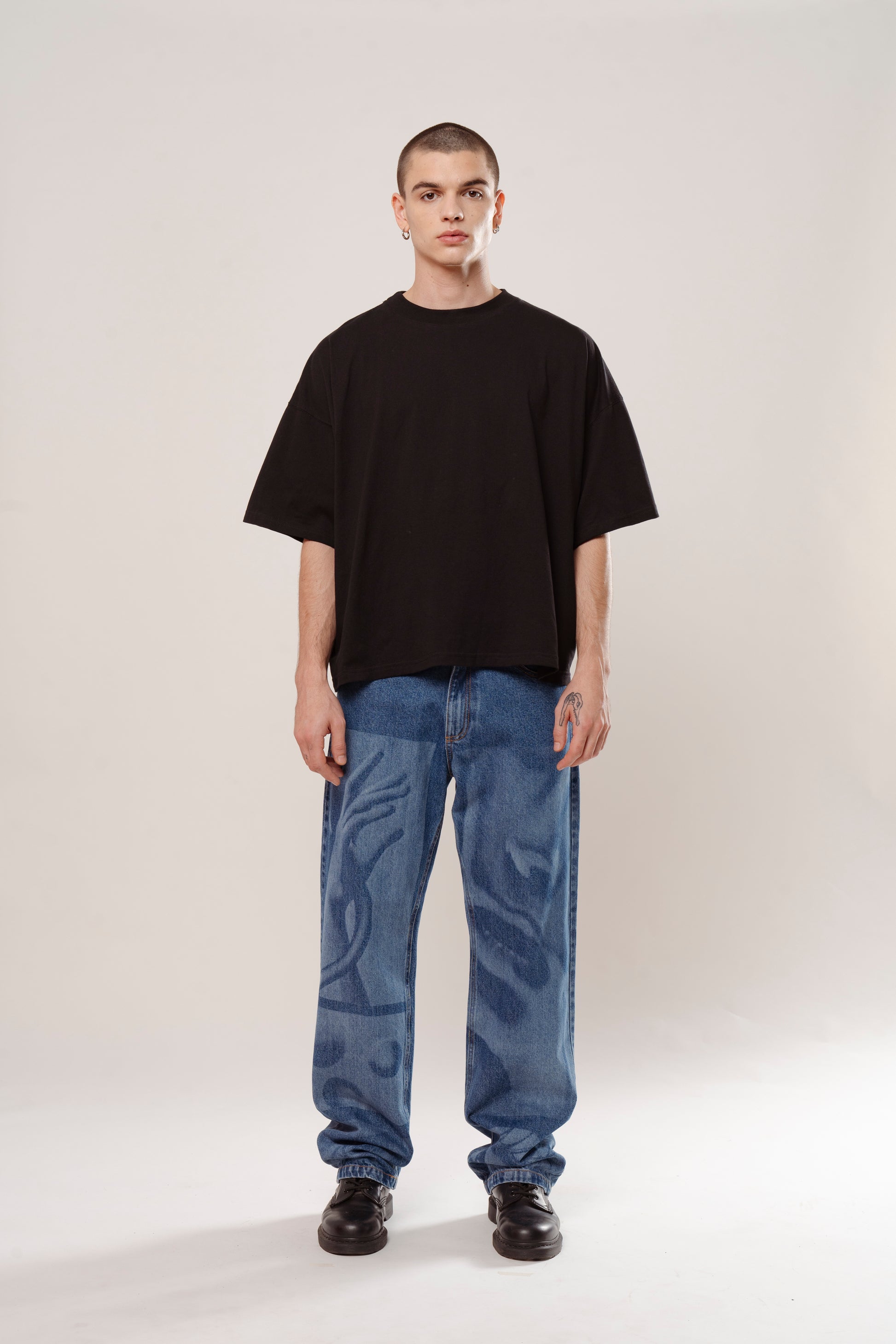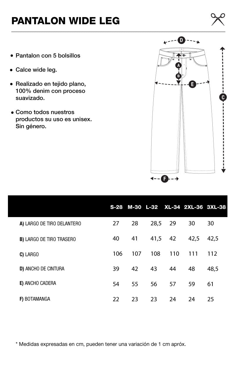 Pantalón cinco bolsillos. Calce wide leg. Realizado en tejido plano, denim 100% algodón con lavado clásico color negro.