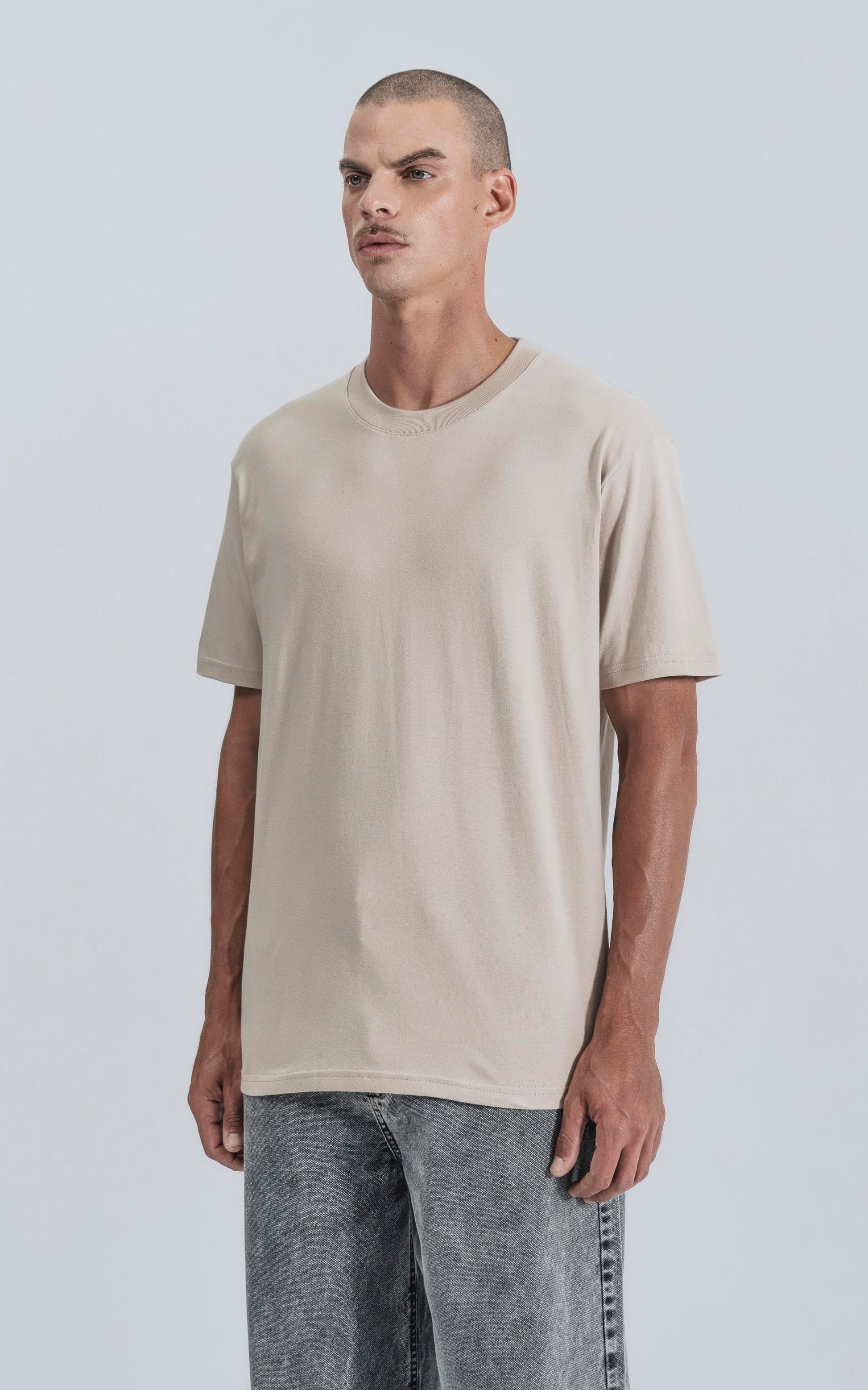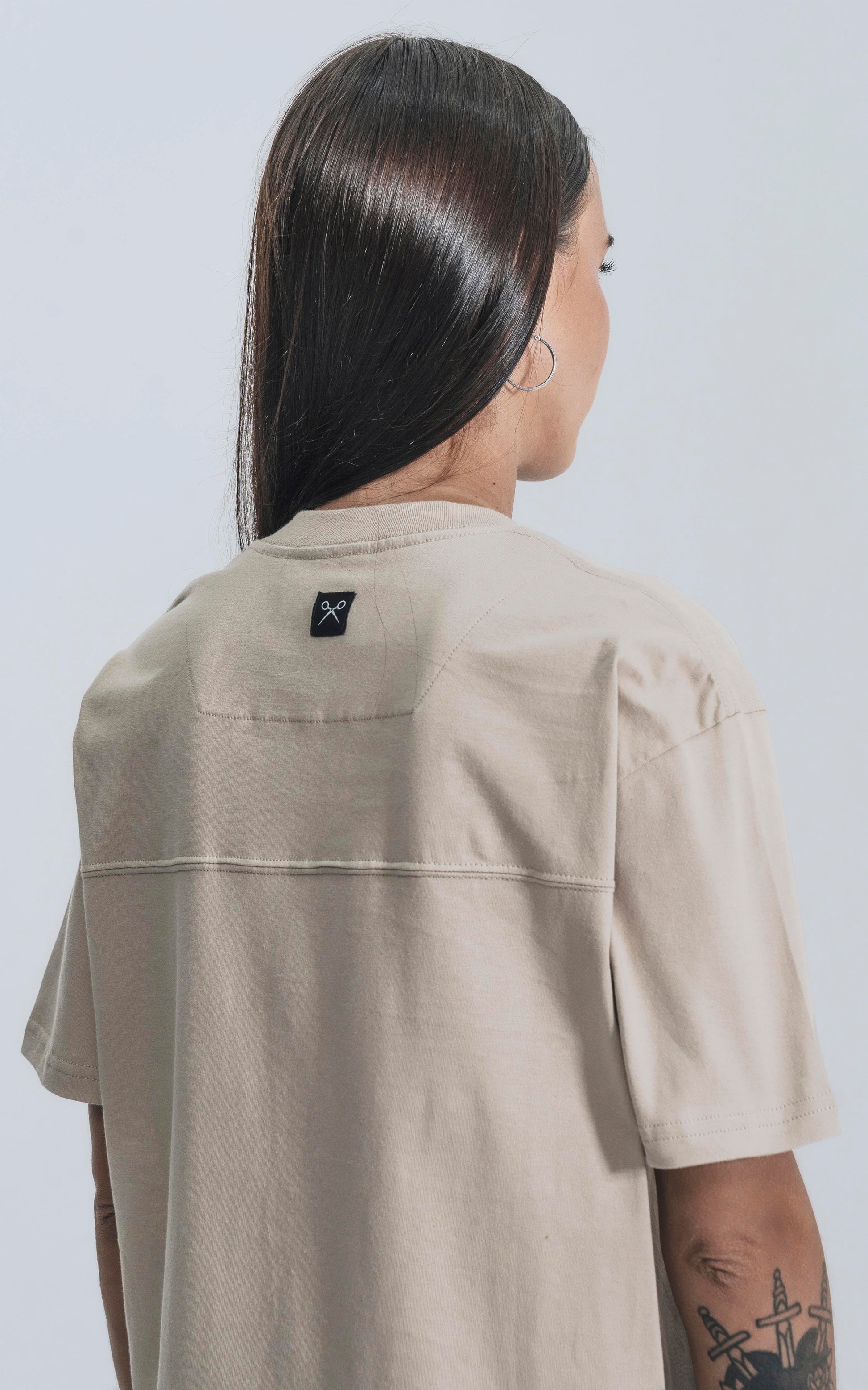 Remera manga corta, cuello redondo y calce regular con recorte en espalda, realizada en algodón premium muy suave al tacto.