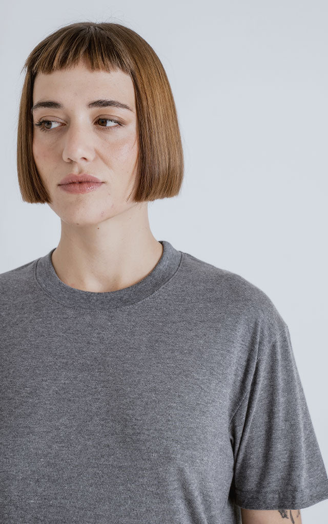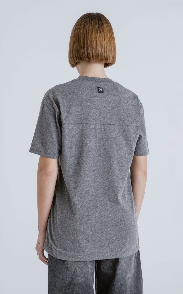 Remera manga corta, cuello redondo y calce regular con recorte en espalda, realizada en algodón premium muy suave al tacto.