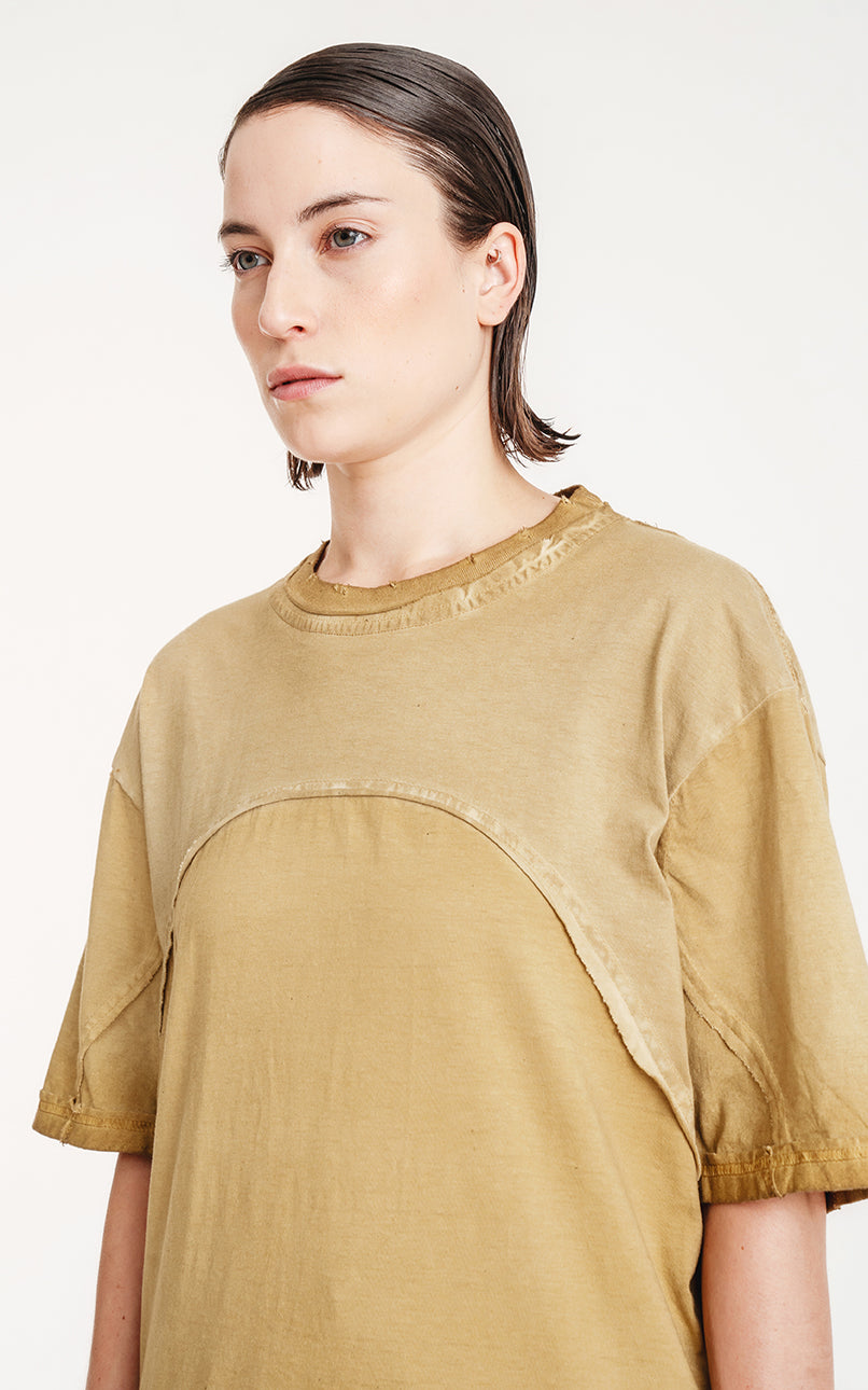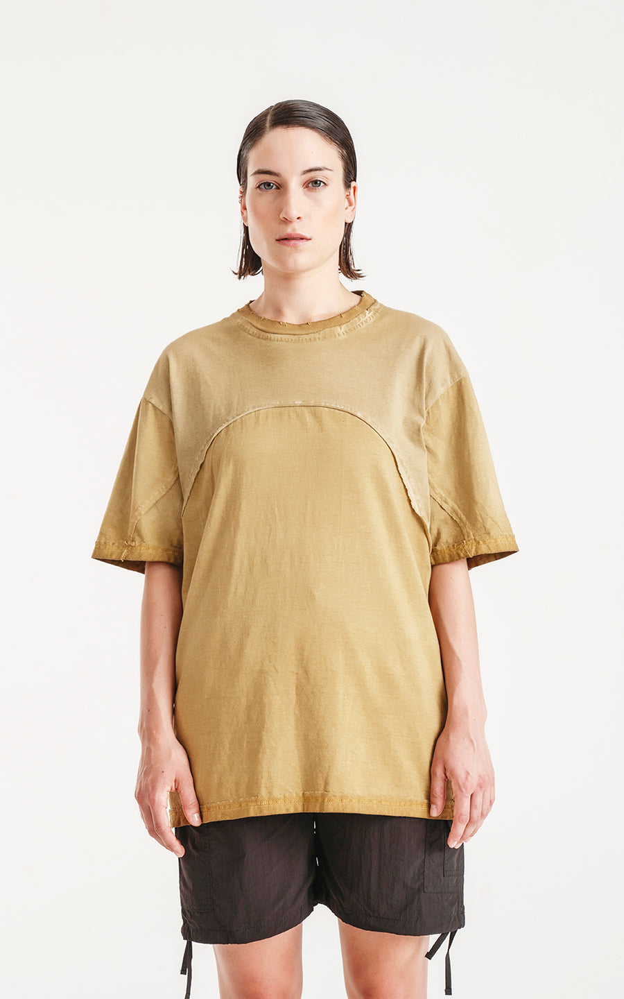 Remera de cuello redondo, calce oversize confeccionada en textil premium 100% algodón más proceso de batik artesanal. Calce oversize.