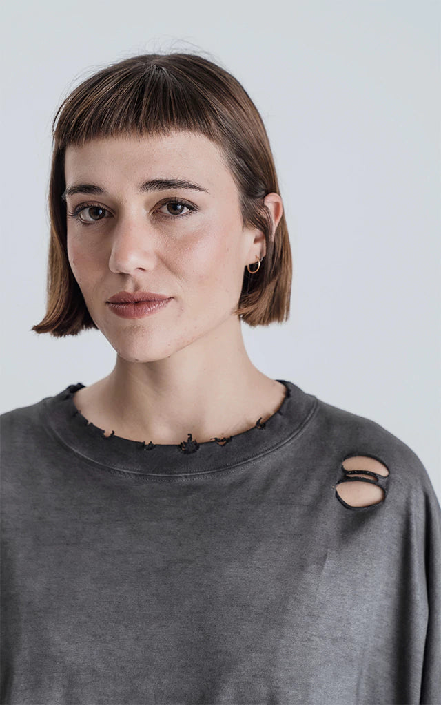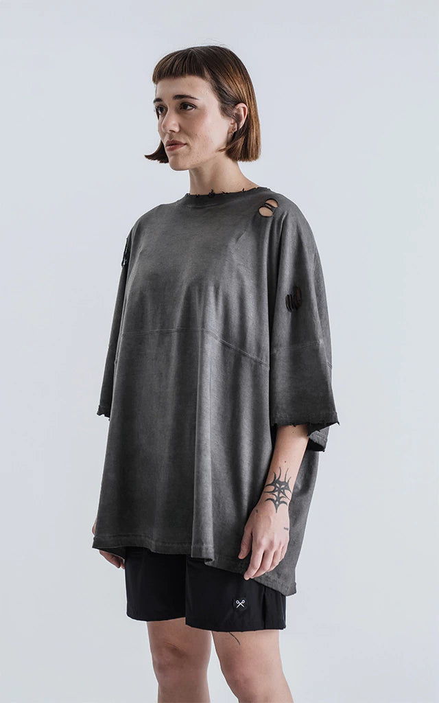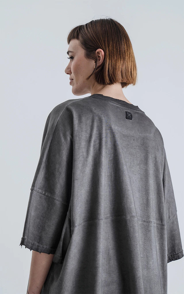 Remera manga corta calce extra oversize, con recorte en delantero y espalda, en tejido jersey 24/1 americano.