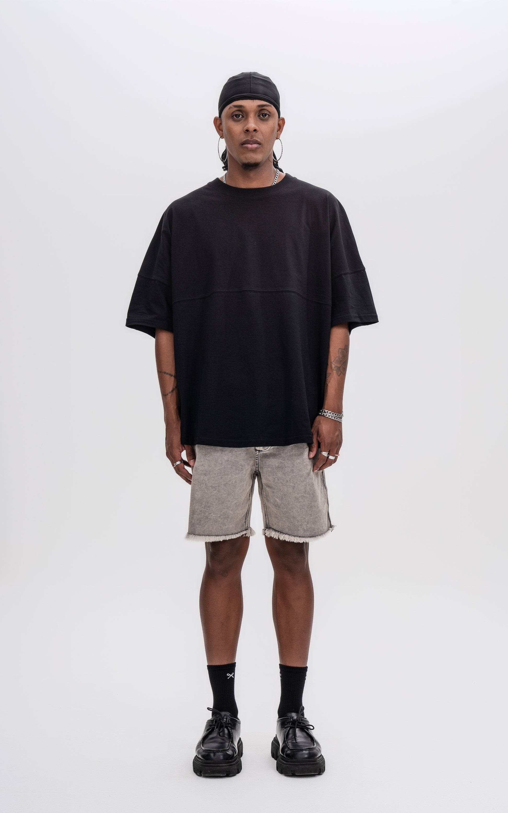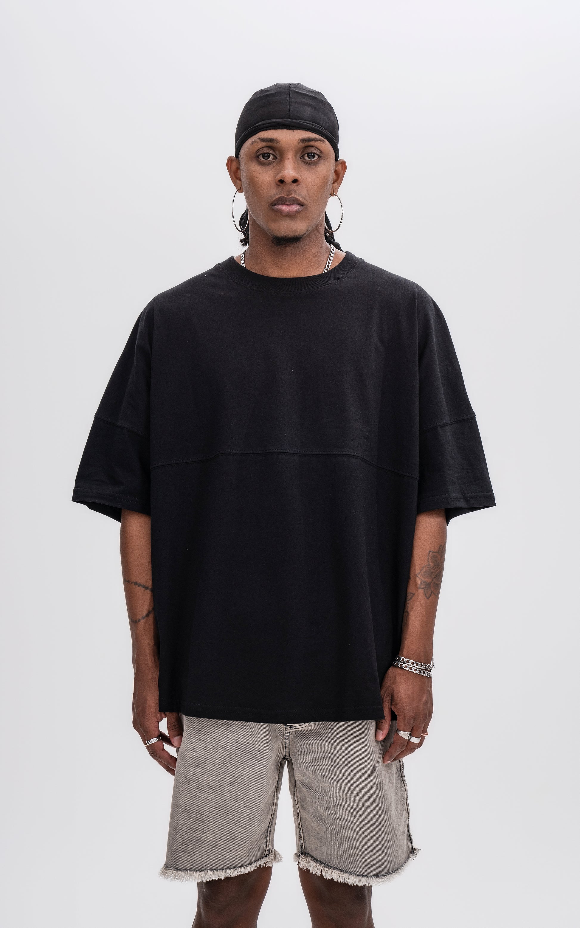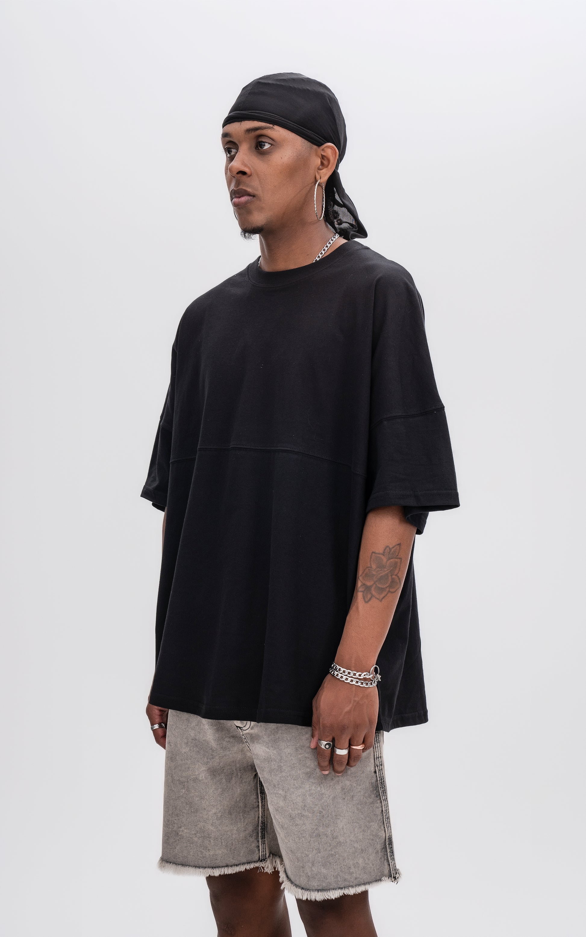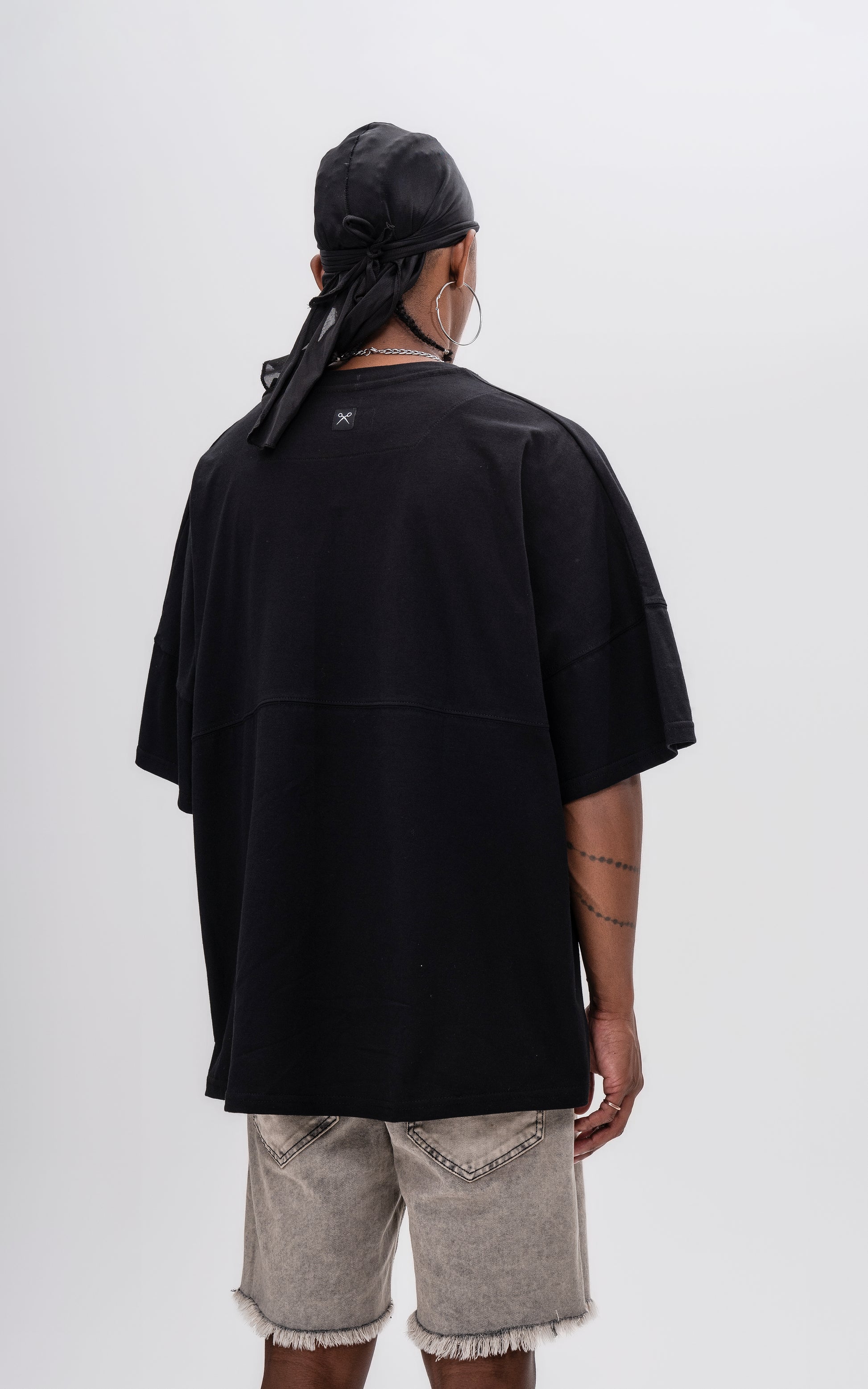 Remera manga corta calce extra oversize, con recorte en delantero y espalda, en tejido jersey 24/1 americano.