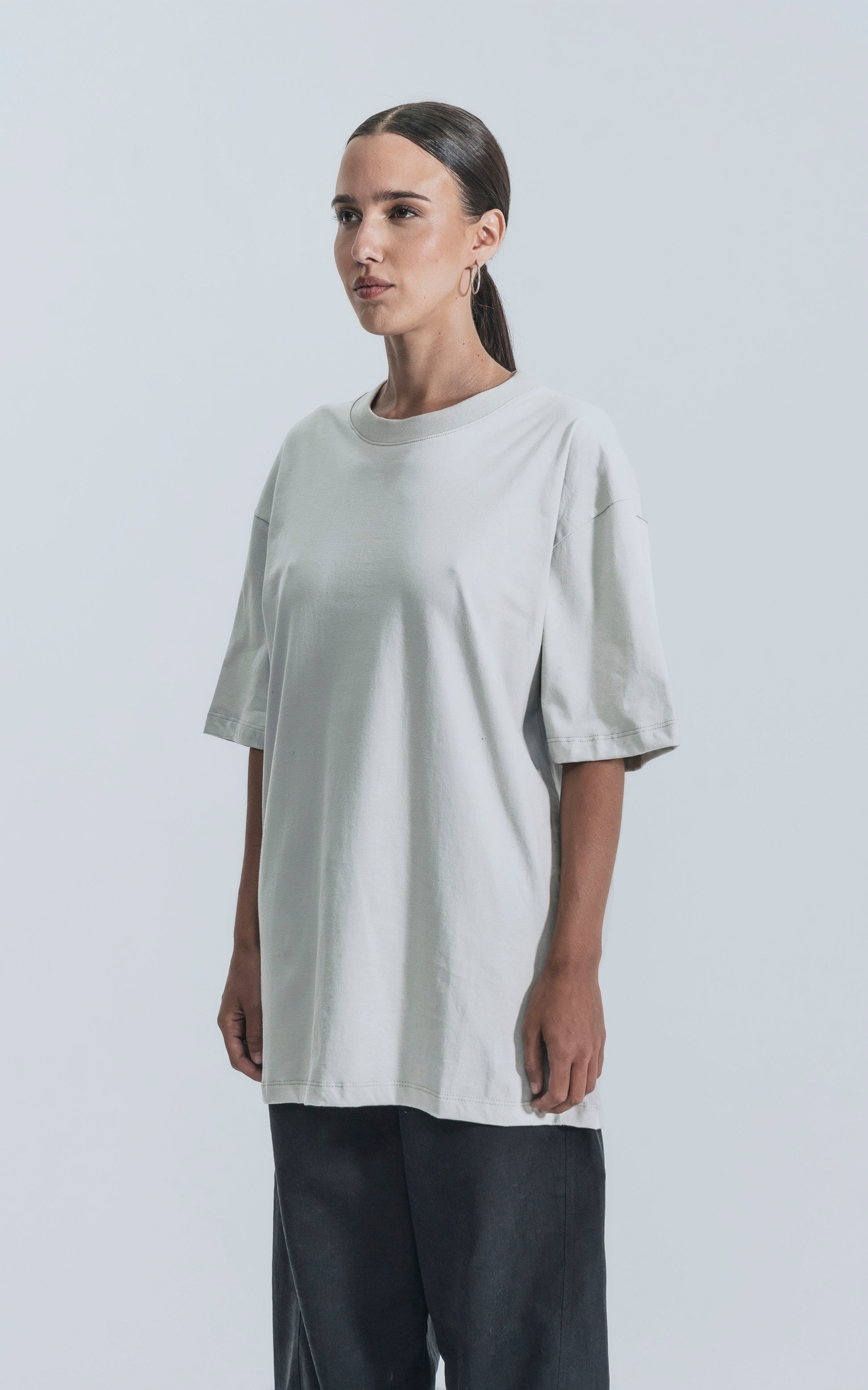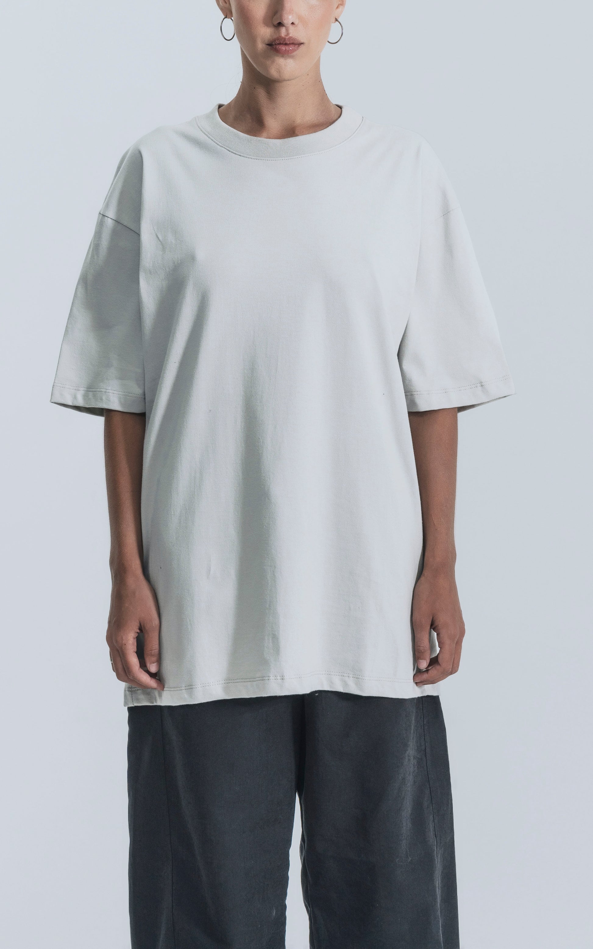Corte crop y calce oversize, esta remera de hombros caídos y silueta relajada es el básico ideal para todos los días.