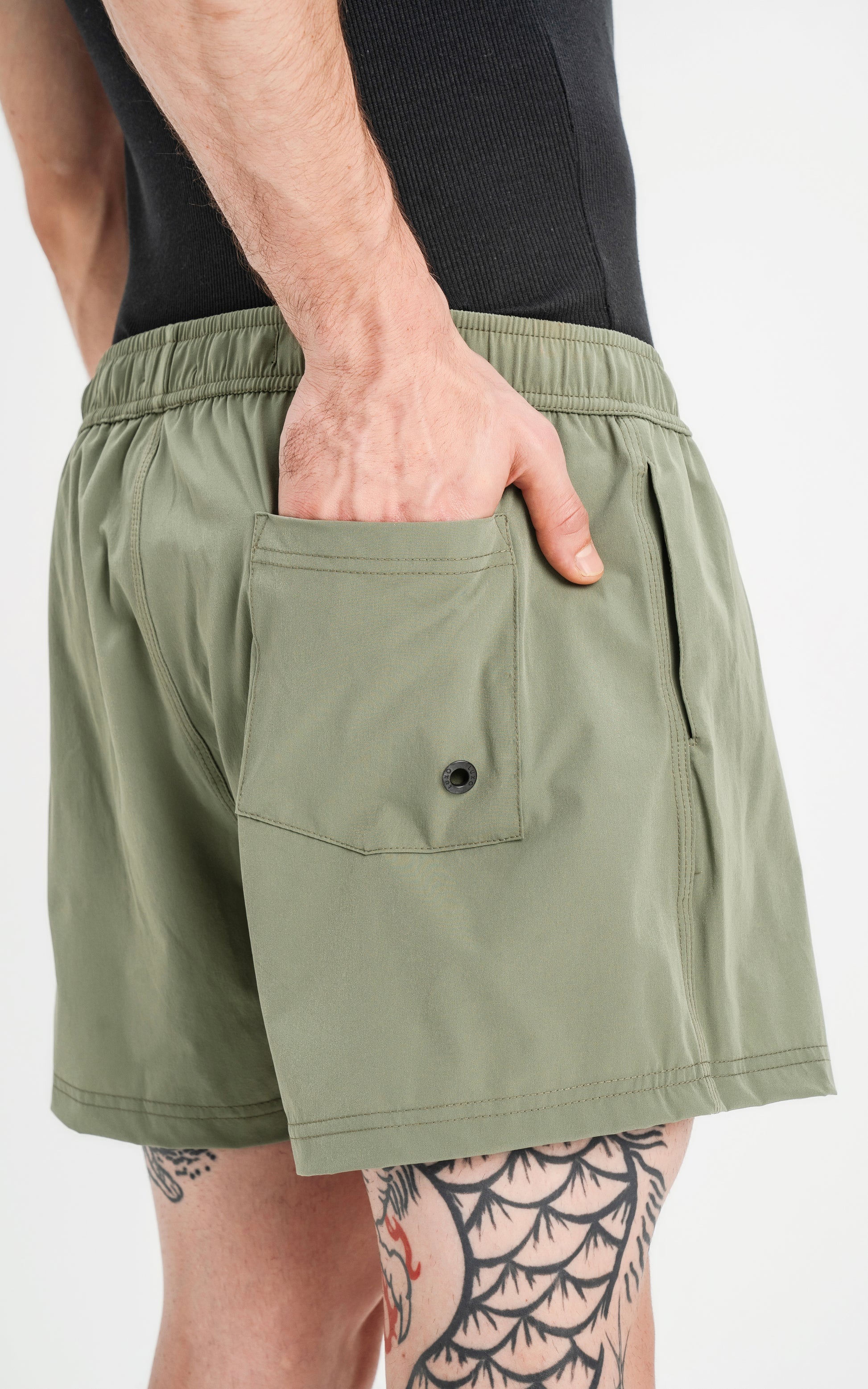 Short de baño calce regular con tres bolsillos elástico en la cintura y cordón para ajustar, confeccionado en textil plano liviano de secado rápido