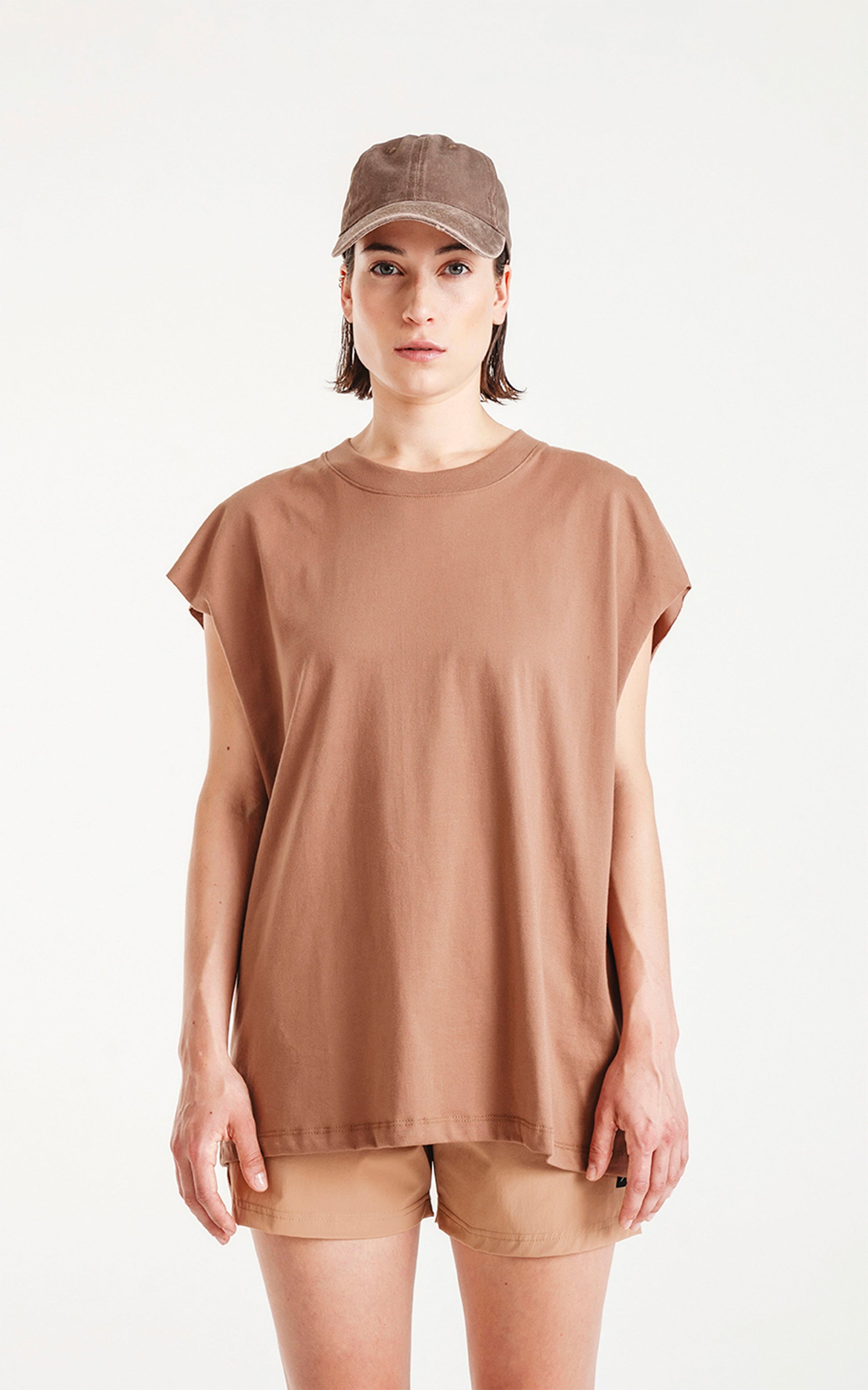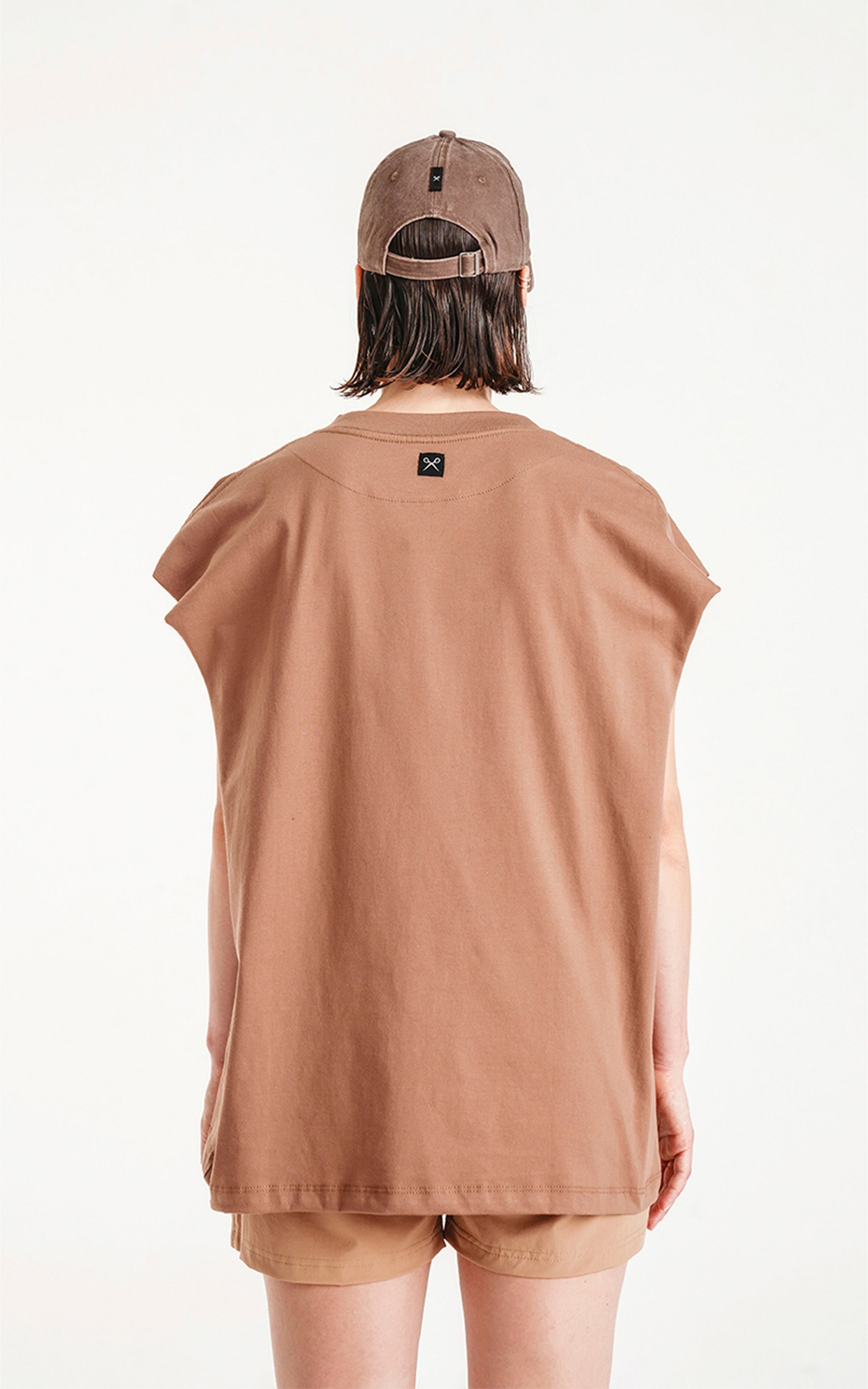Realizado en algodón premium americano muy suave al tacto y combinado con cuello rib al tono en formato redondo y doble costura al tono del color base.
