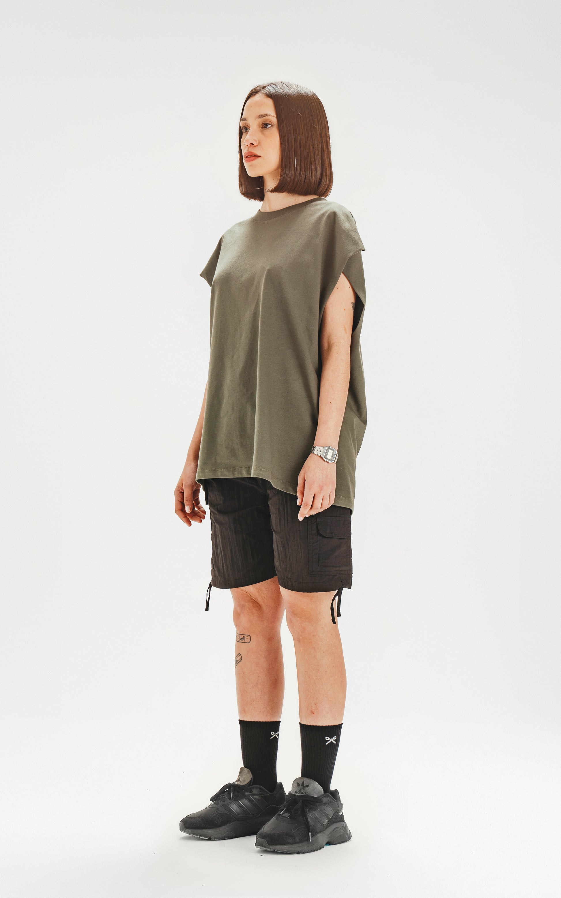 Corte extra oversize y hombros caídos.